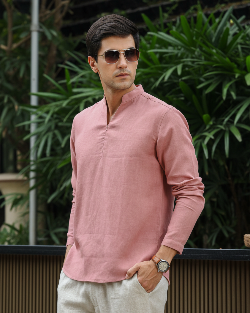 We offer linen full sleeved shirts as well as half sleeve shirts, kurtas and t-shirts.