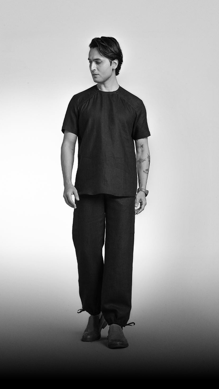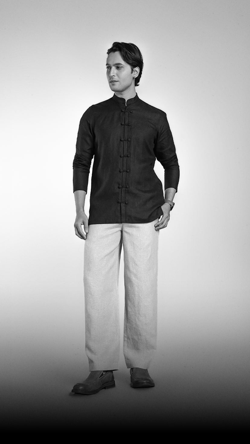 We offer linen full sleeved shirts as well as half sleeve shirts, kurtas and t-shirts.