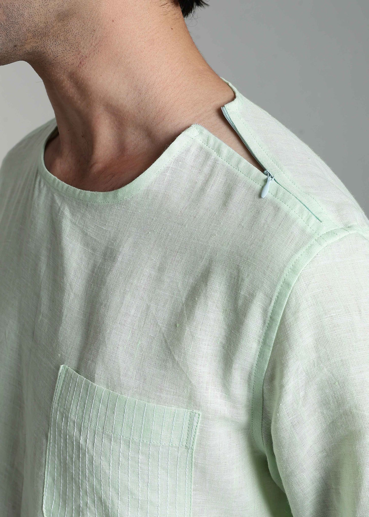 Simon - Pure Linen Stitch Detail Short Sleeve T-Shirt - Pastel Green