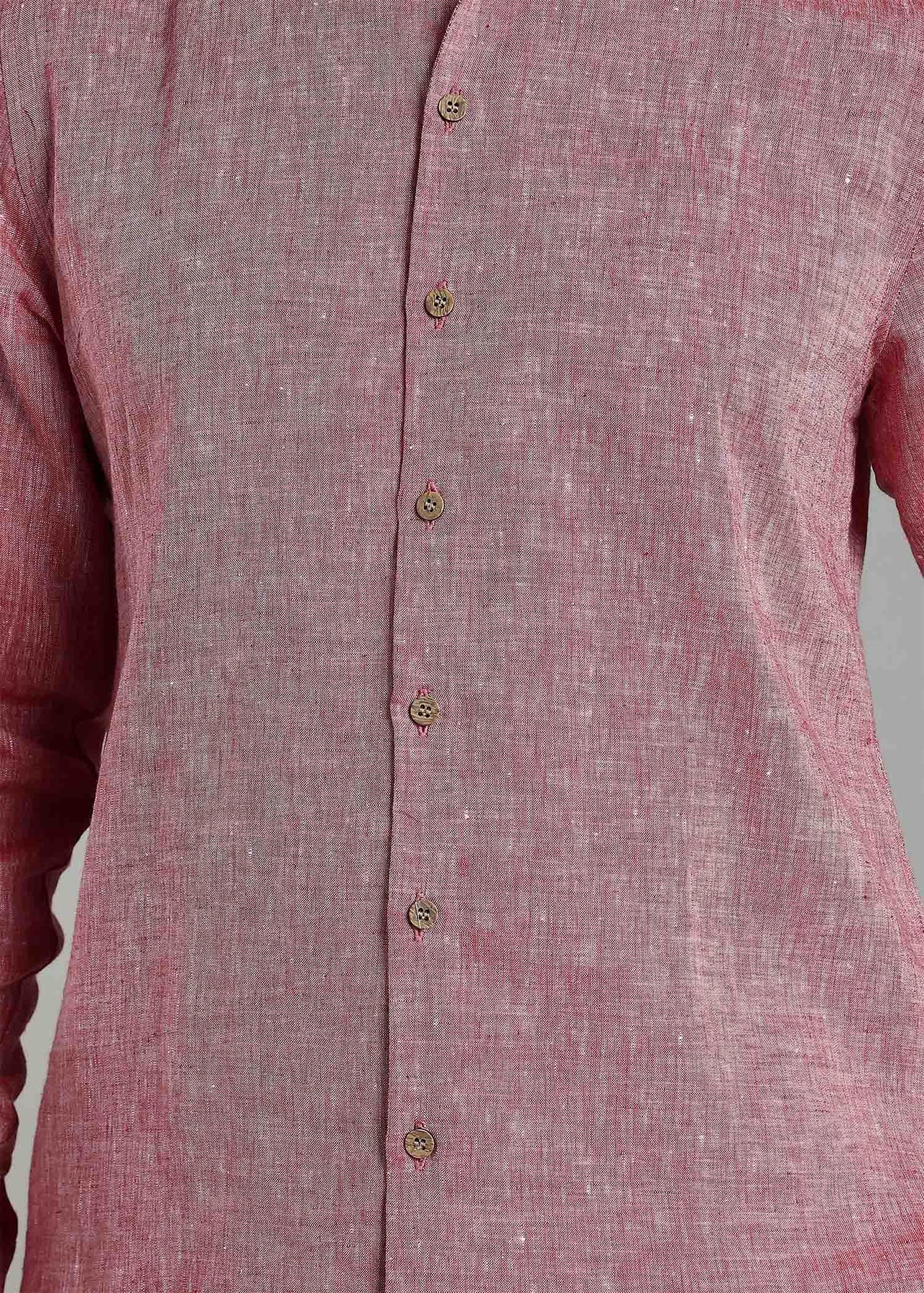 Zeke - Pure Linen Shirt with Back Box Pleat & Button Detail - Red Chambray