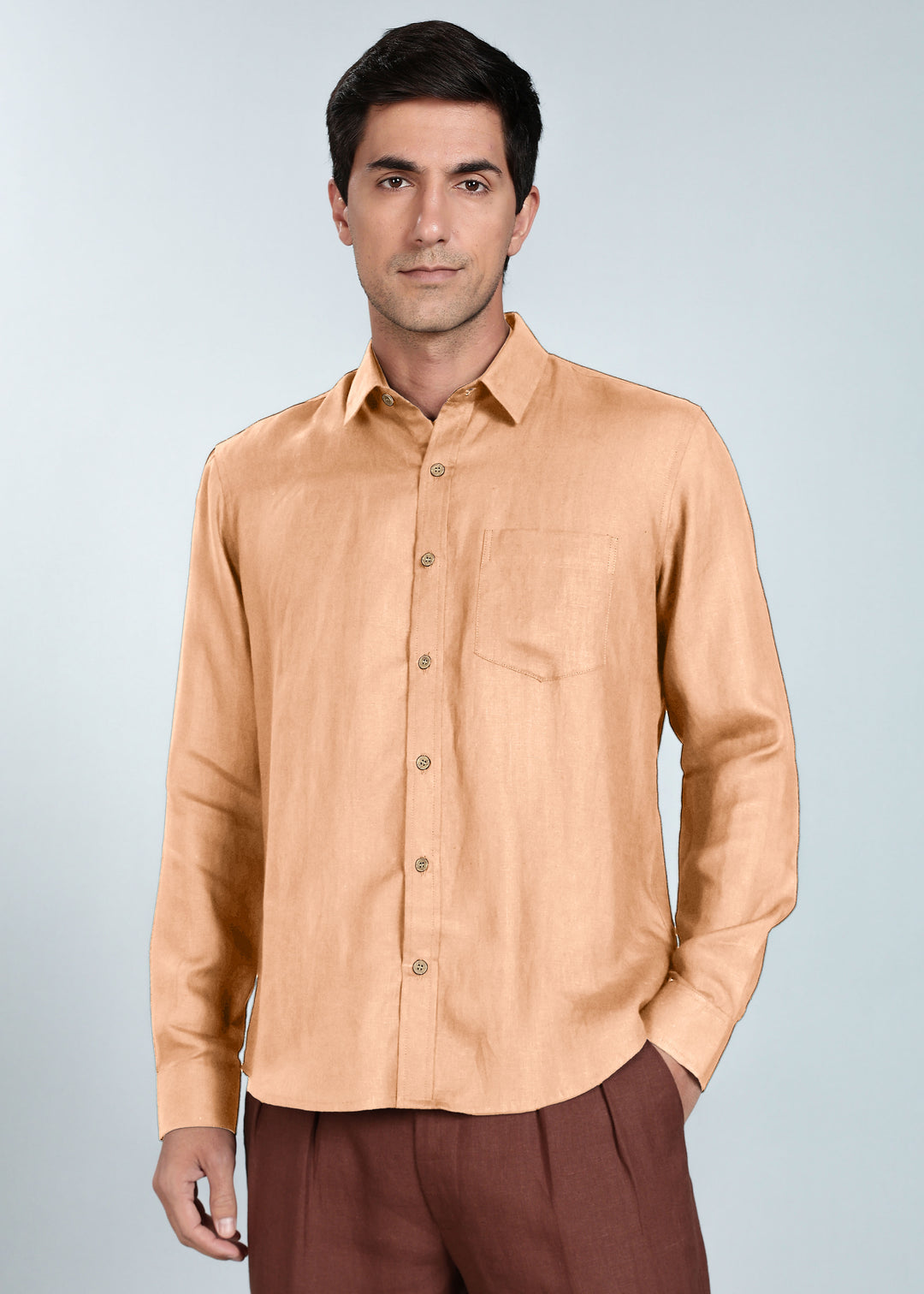 Harvey - Pure Linen Full Sleeve Shirt - Light Cinnamon