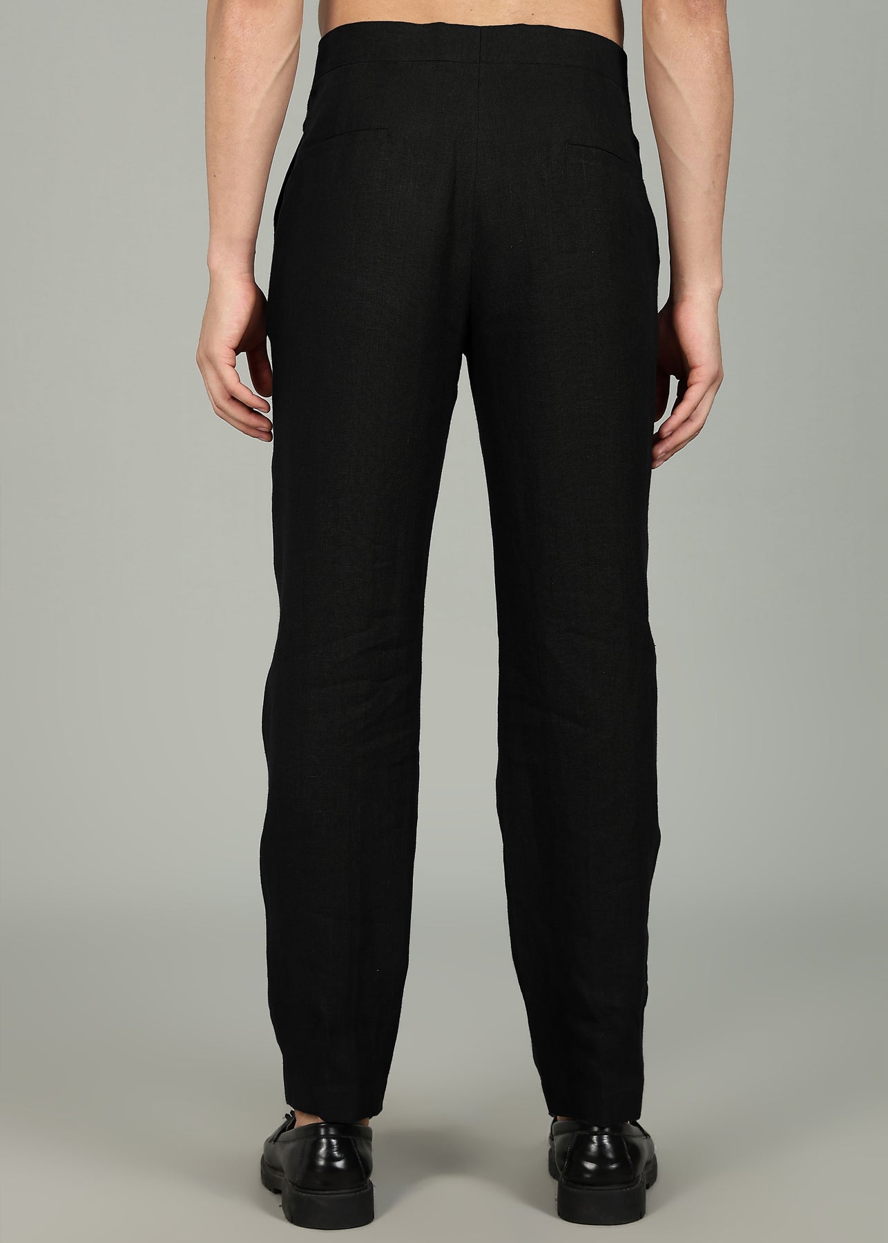 Moe - Pure Linen Extended Strap Formal Pants – Black