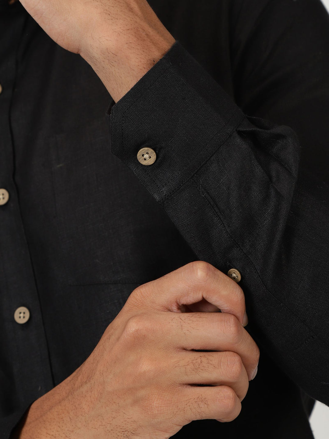 Harvey - Pure Linen Full Sleeve Shirt - Black