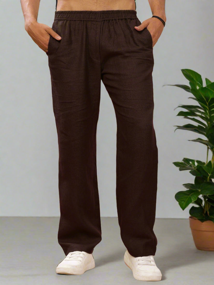 Breeze- Linen Casual Elastic Pants - Cocoa Brown