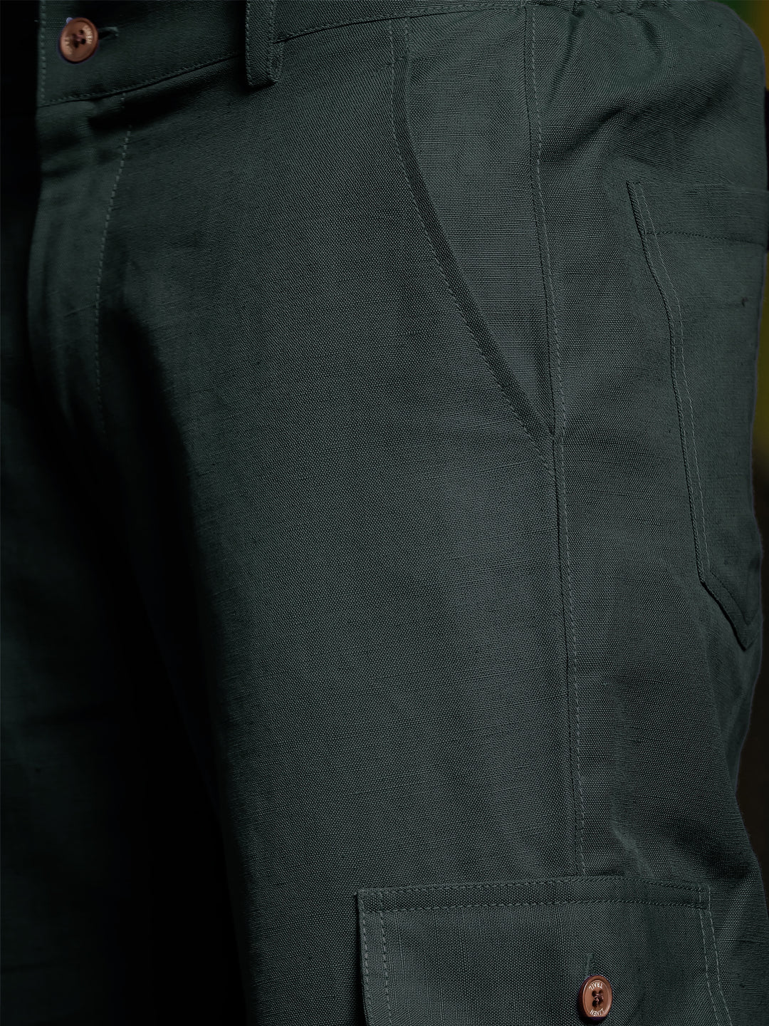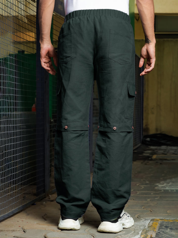 Introducing our game-changing 2-in-1 Convertible Linen Trousers in a timeless dark green hue. Effortlessly transition from trousers to shorts with a simple button-detachment system, offering flexibility for any occasion. Crafted for comfort from high-quality linen, these trousers look even more stylish when paired with our coordinating linen jackets. Elevate your wardrobe with this versatile piece that seamlessly combines fashion and functionality.