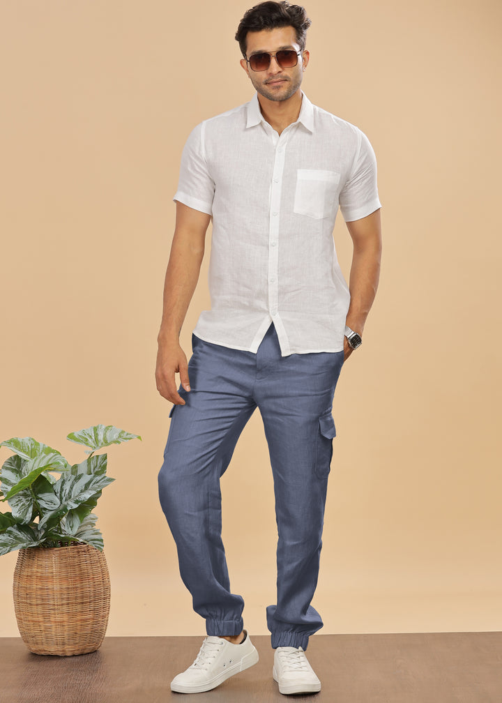 Dark Blue Grey joggers for men that are extremely comfortable. Elastic waist band along with 6 pockets make it your favorite pair.