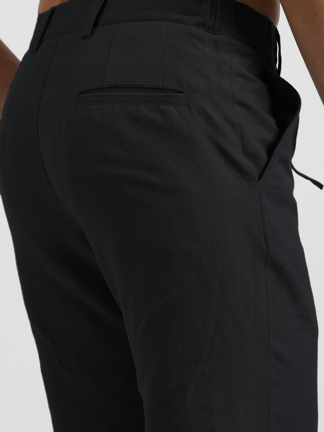 Introducing the Theo - Linen Travel Pants in Black. These tailored fit pants feature 4 pockets and side elastic, making them the perfect travel companion. Stay comfortable and stylish on-the-go in these versatile linen pants.