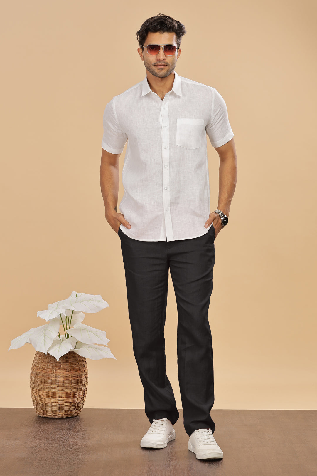 Complete the ensemble with stylish sunglasses for added flair. This versatile combination strikes a balance between comfort and sophistication, suitable for any occasion. Our linen-wear goes through our proprietary Linius process to ensure zero-shrinkage and superior hand-feel with the perfect fit, finish, and fall in Linen.