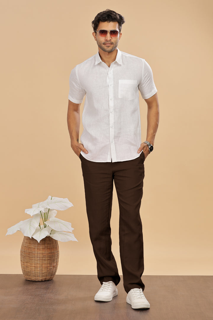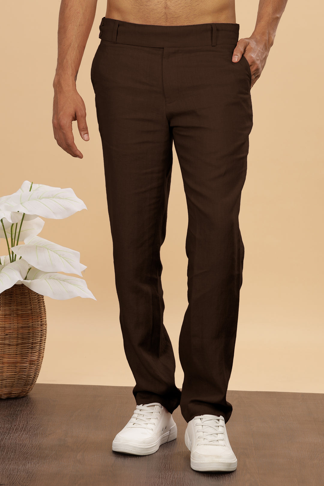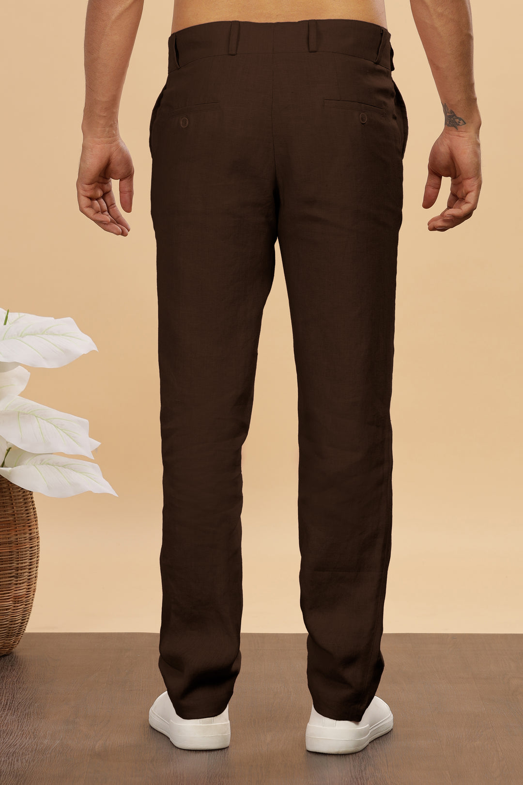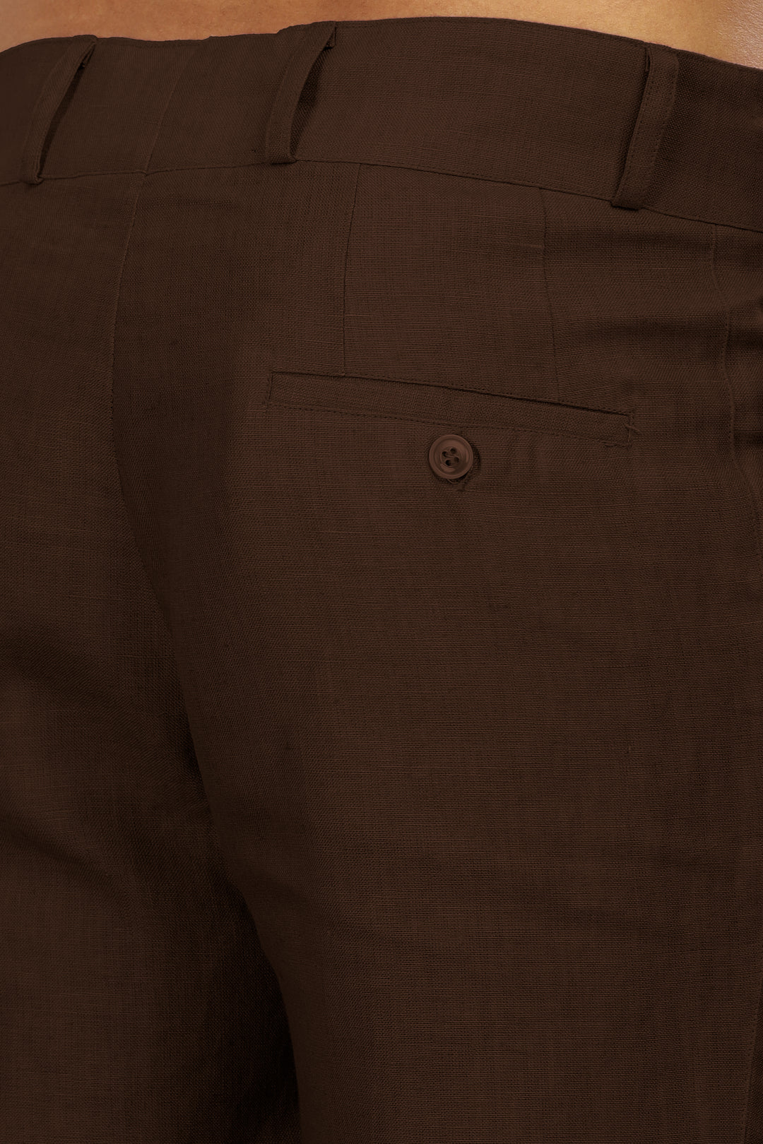 Brandon Double Button Broad Pure Linen Trousers - Cocoa Brown