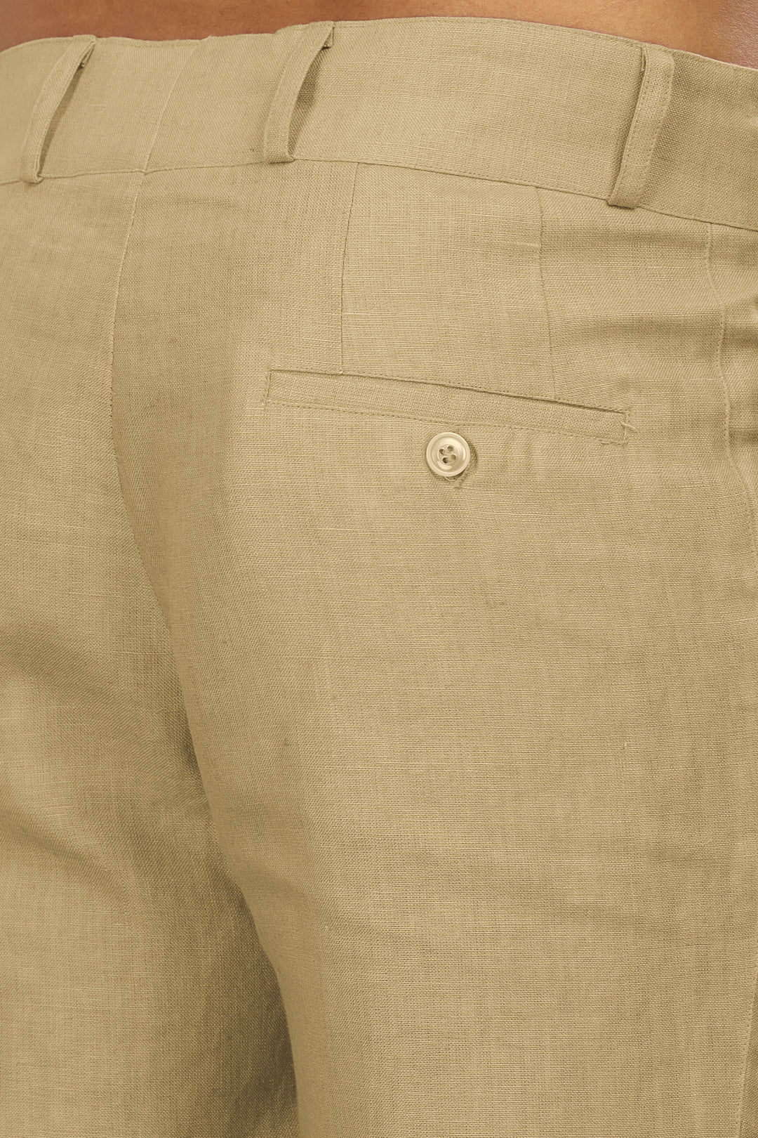 Double button broad waistband linen trousers in Military Green offer timeless style and comfort for all seasons. The broadband and adjustable double buttons enhance the overall comfort while pairing them with our 100% Pure Linen Shirts creates a polished look.