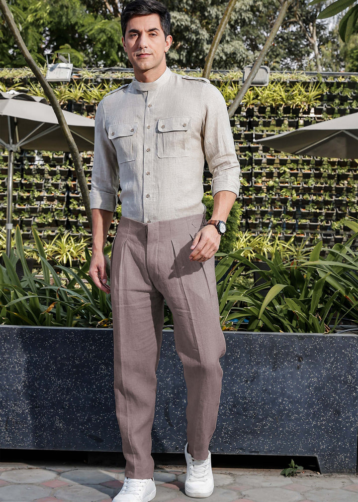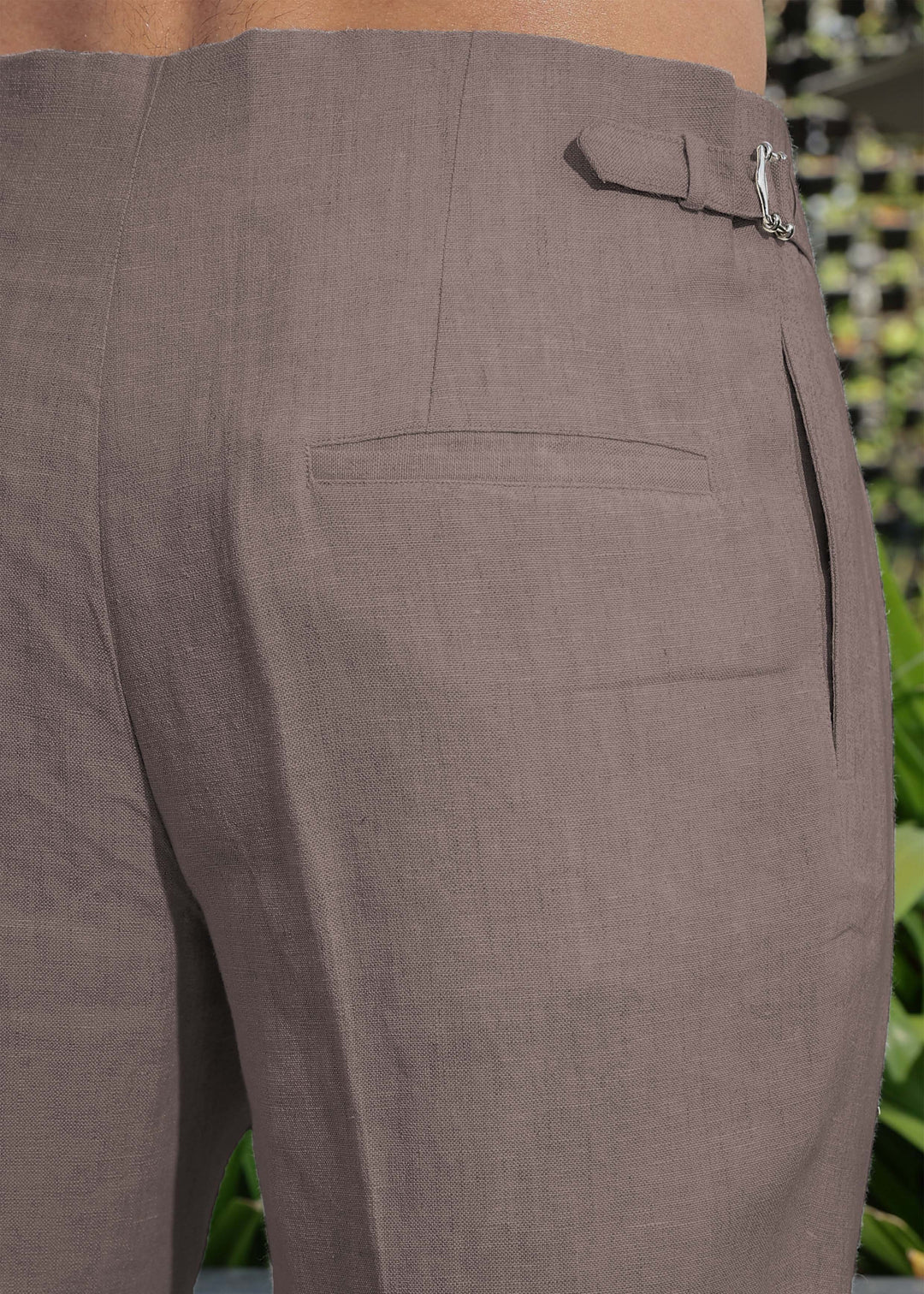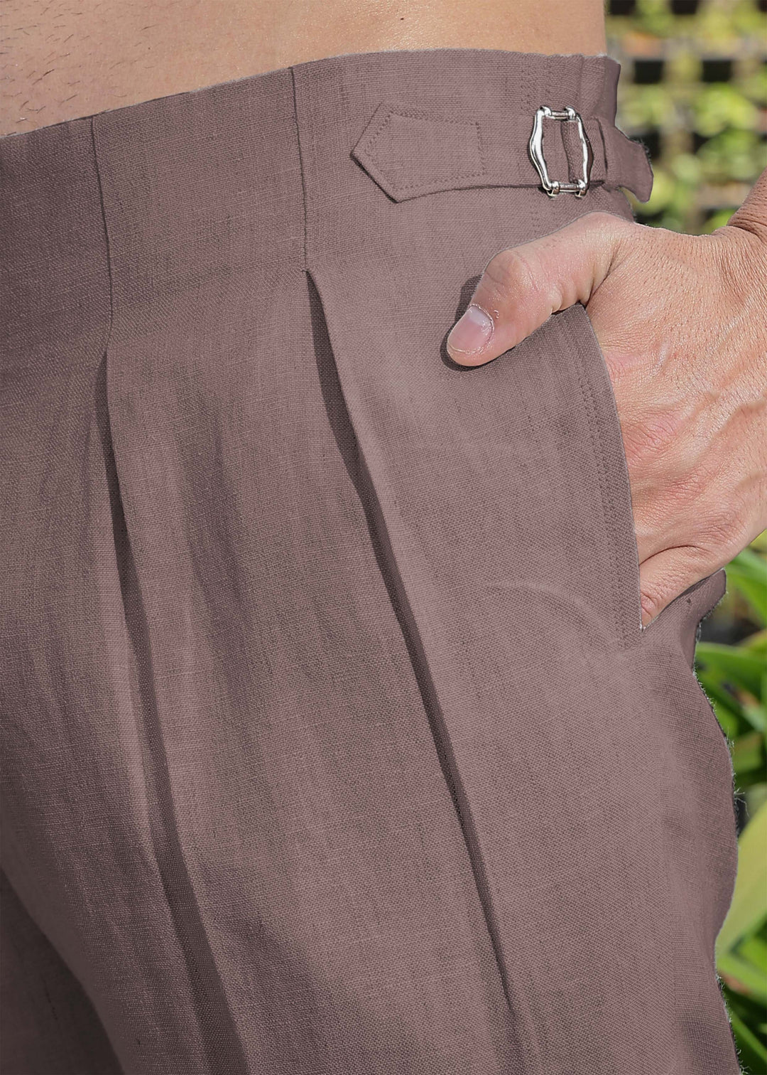 Dollar - Pure Linen Pleated Trousers with Adjustable Waistband – Muted Brown