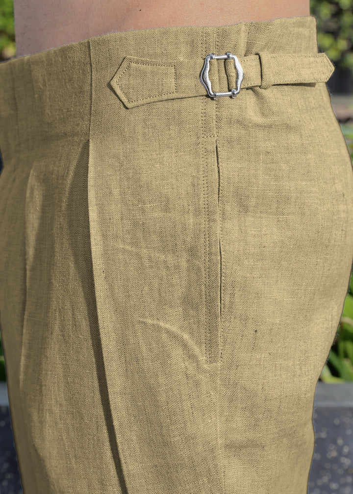Dollar - Pure Linen Pleated Trousers with Adjustable Waistband – Sage Green