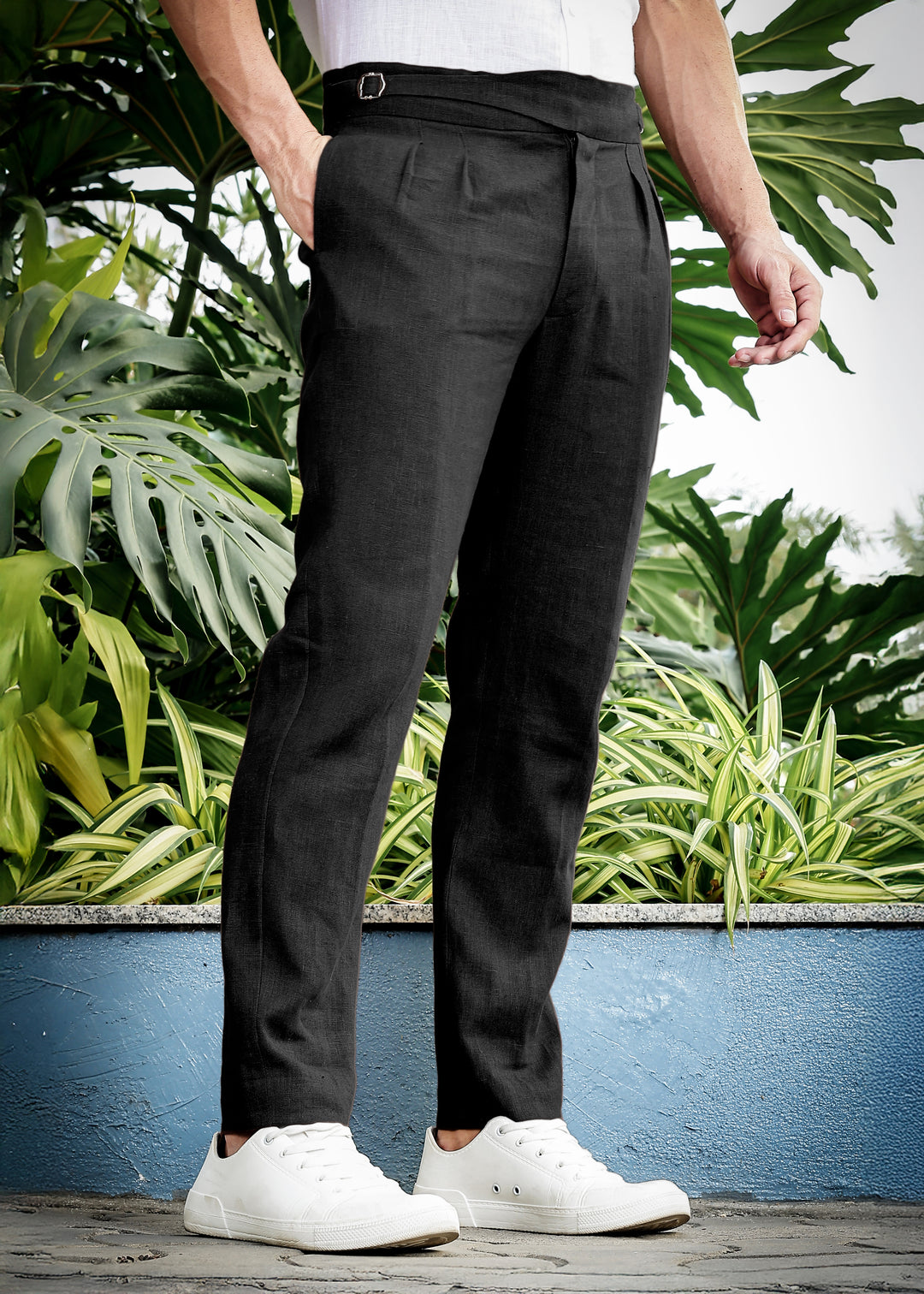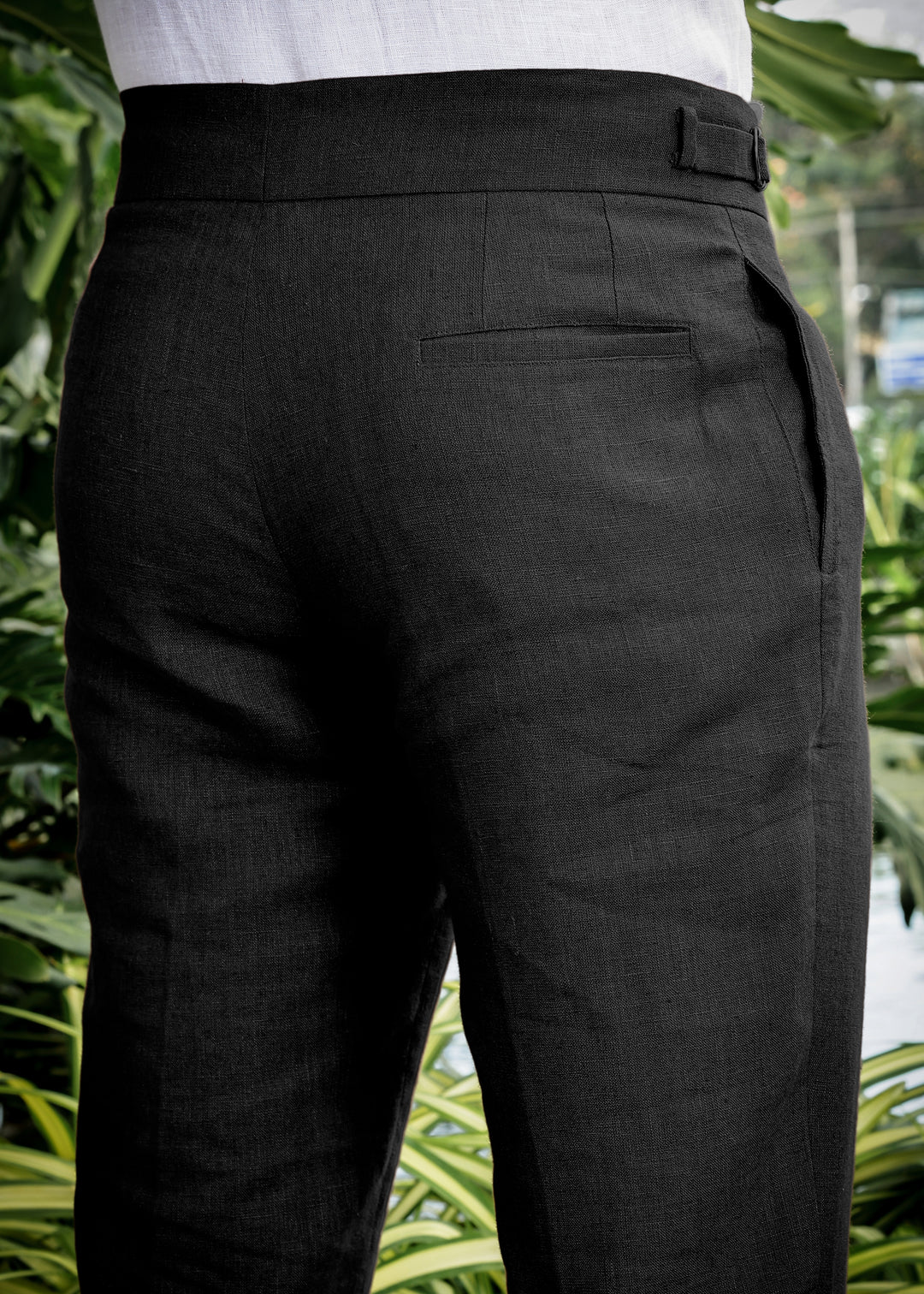 Ed - Premium Pure Linen Gurkha Pants - Black