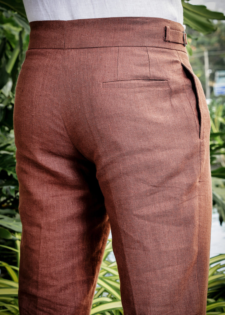 Ed - Premium Pure Linen Gurkha Pants - Amber Brown