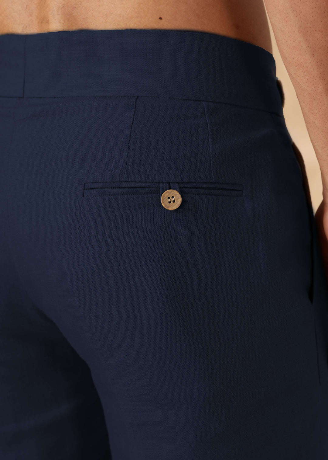 Foster - Pure Linen Trousers with Stylised Waistband - Navy Blue