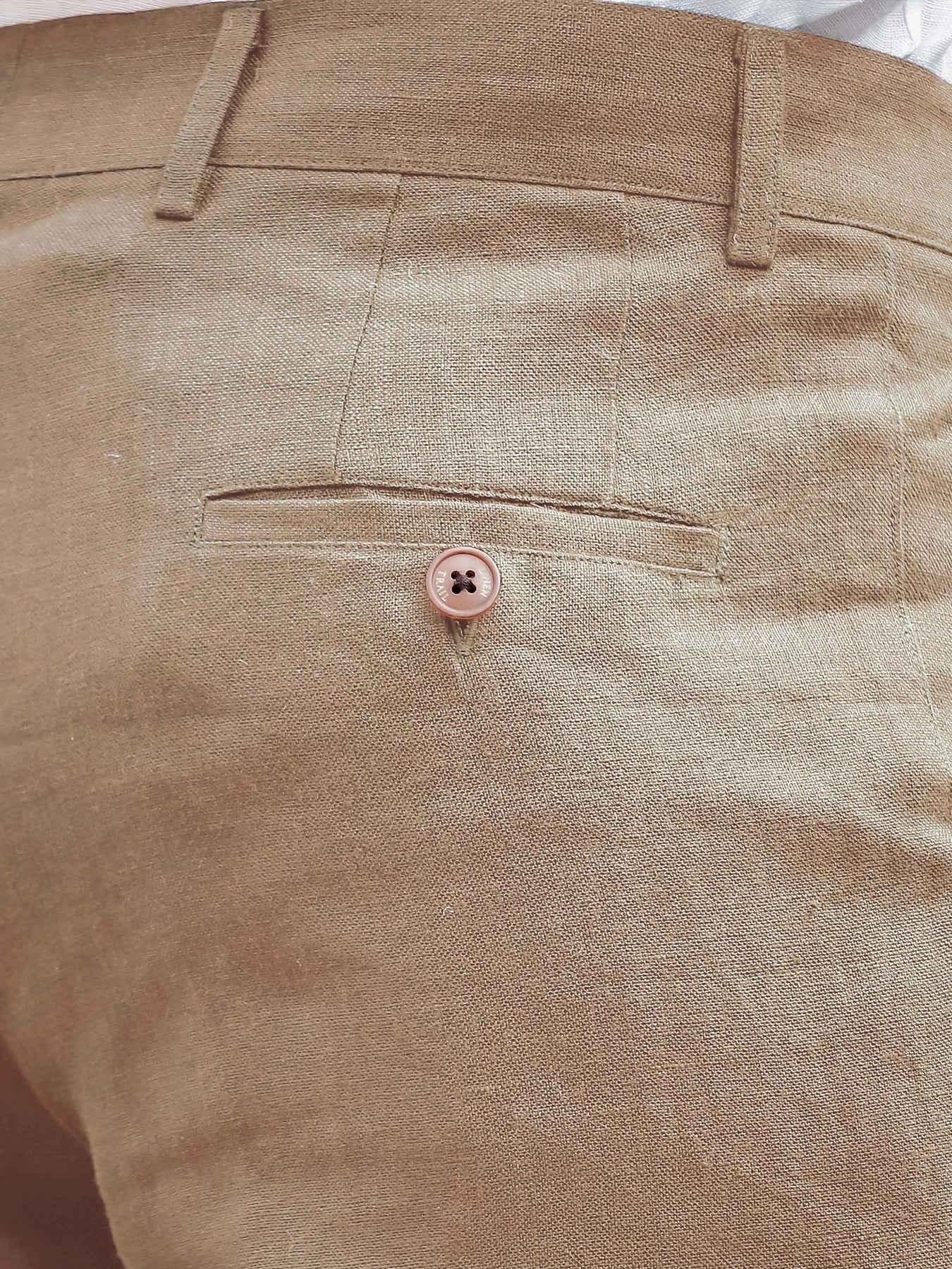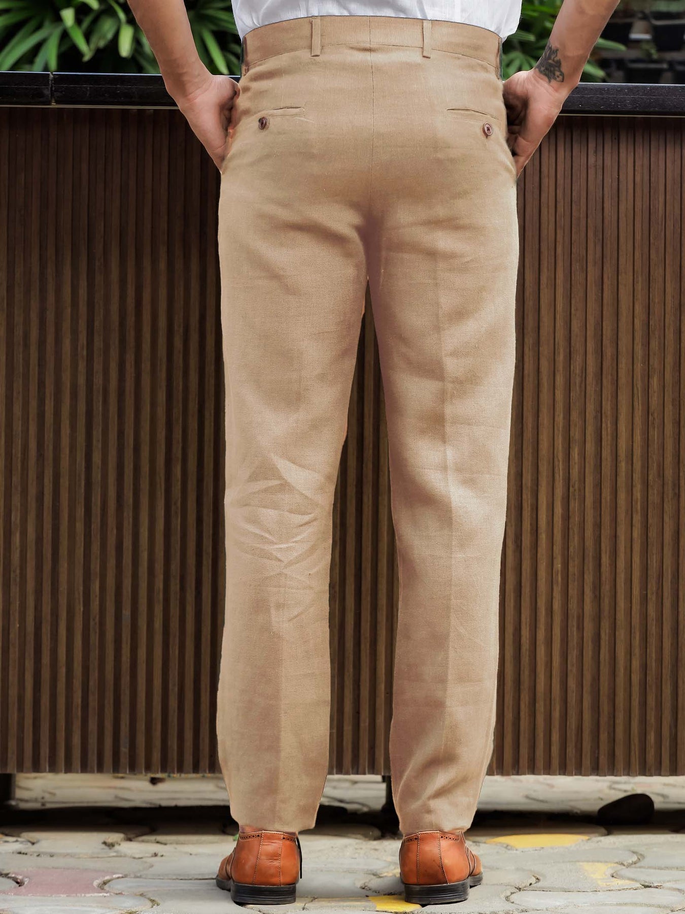 Classic pleated linen trousers in Light Hazelnut Brown offer timeless style and comfort for all seasons. The front pleats ensure ease of movement, while pairing them with our 100% Pure Linen Shirts creates a polished look.