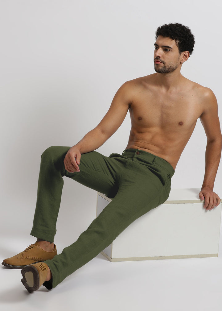 Ian Pure Linen Trousers - Military Green