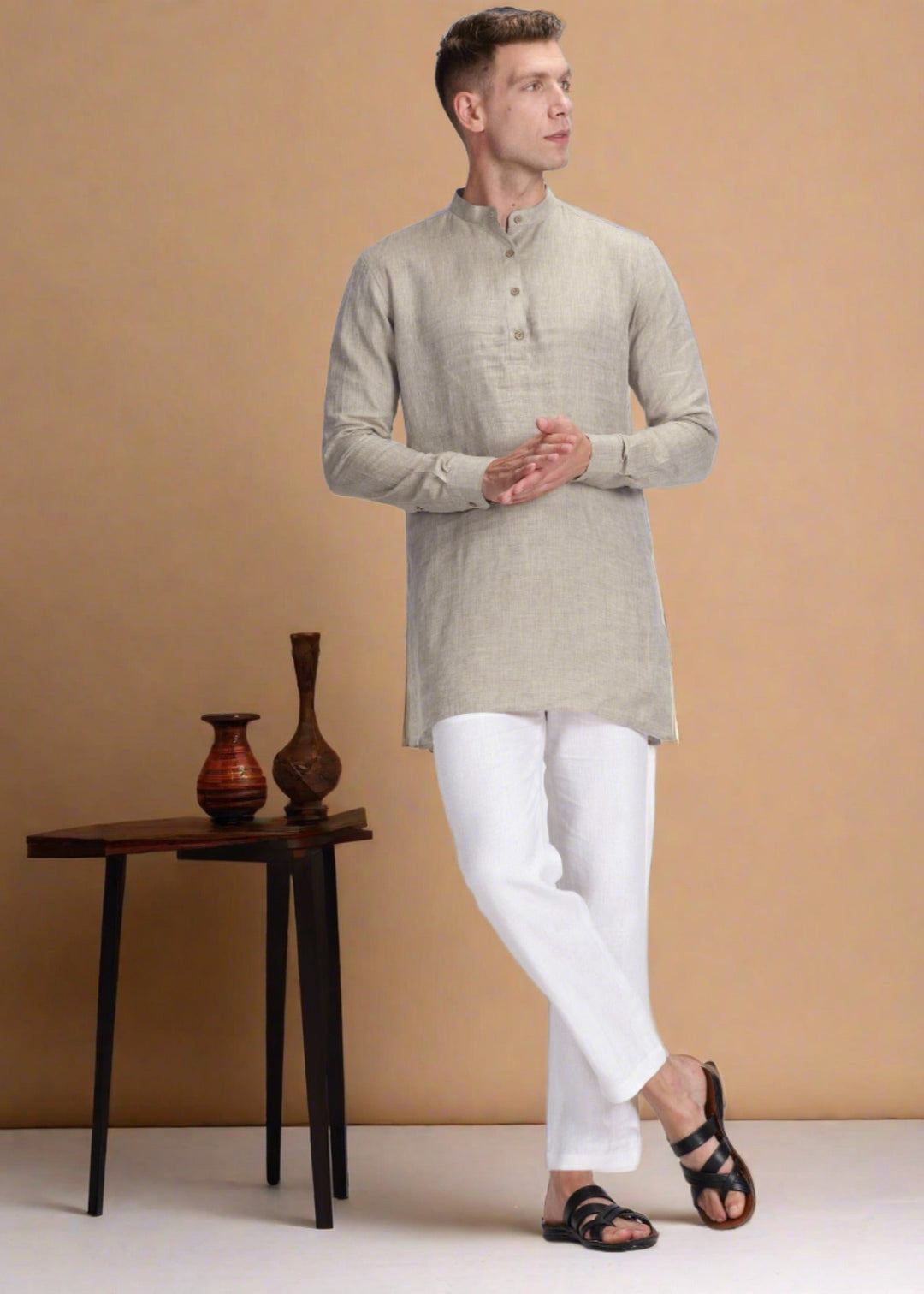 Pair with traditional footwear, a matching or contrasting linen jacket, and minimal accessories for a clean, regal look.