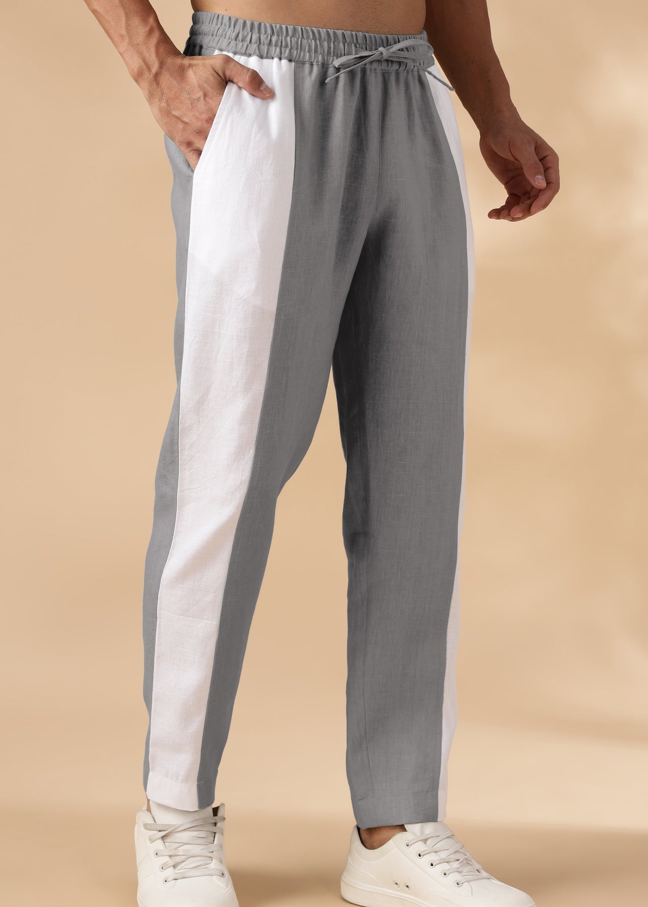 Effortlessly stylish and comfortable, our Duo Pure Linen Pants in Steel Grey are the perfect addition to your wardrobe. Made with a relaxed fit and added side panels in white, these trousers offer extra comfort with a full elastic waistband and drawcord. Pair them with our Dune Linen Shirt for a chic, coordinated look.