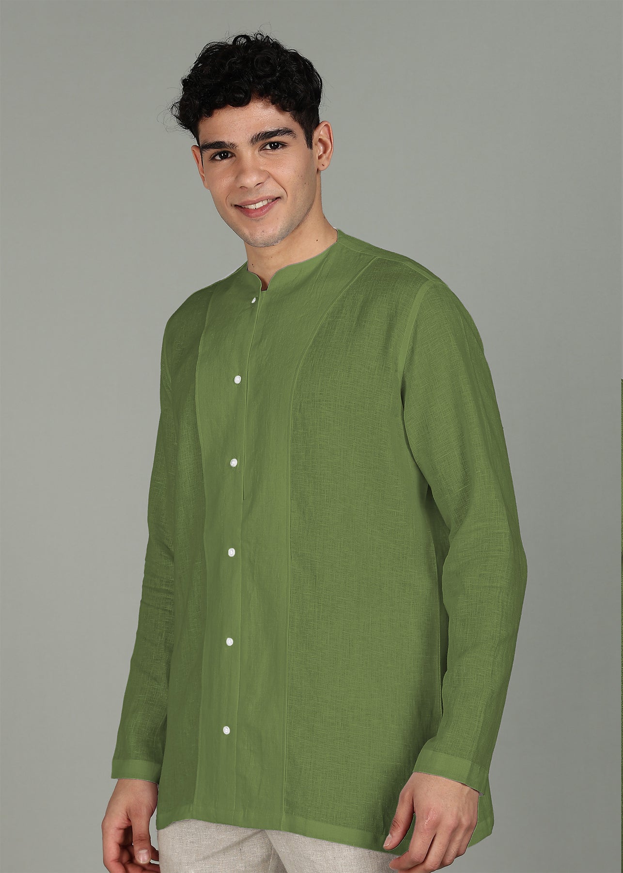 Neev - Full Sleeve Pure Linen Short Kurta - Cossack Green