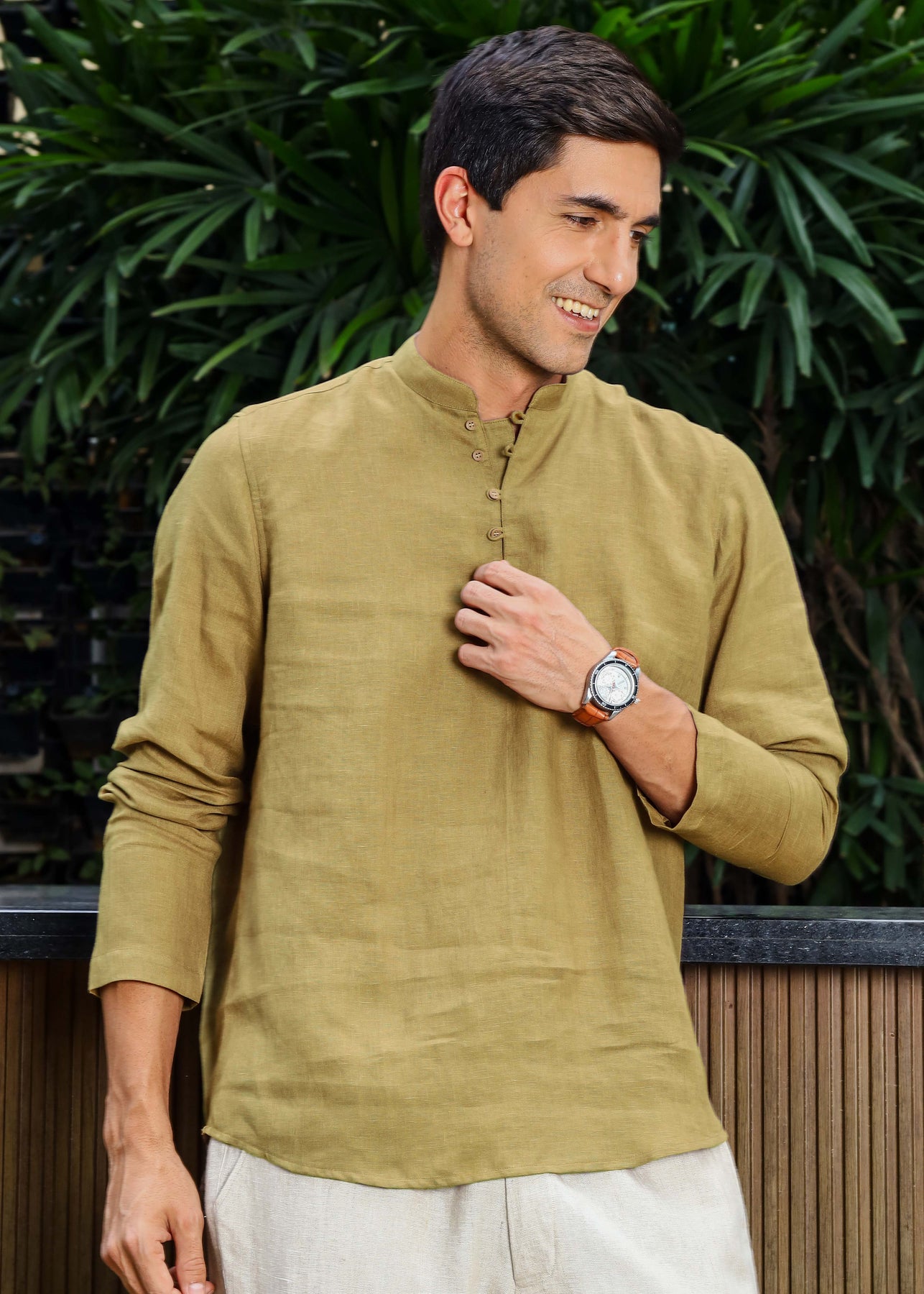 Our linen wear goes through our proprietary Linius process to ensure zero-shrinkage and superior hand-feel with the perfect fit, finish, and fall in Linen. We at linen trail use 44-60 LEA count which works best for shirts as they are not too transparent and yet soft and comfortable to wear after our Linius process.