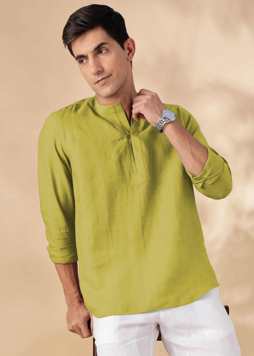 - Linen short kurtas are an excellent choice for special events such as weddings and festivals. For an ethnic style, pair them with churidar bottoms or traditional dhotis. Remember to decorate with a fashionable watch or an ethnic bracelet.