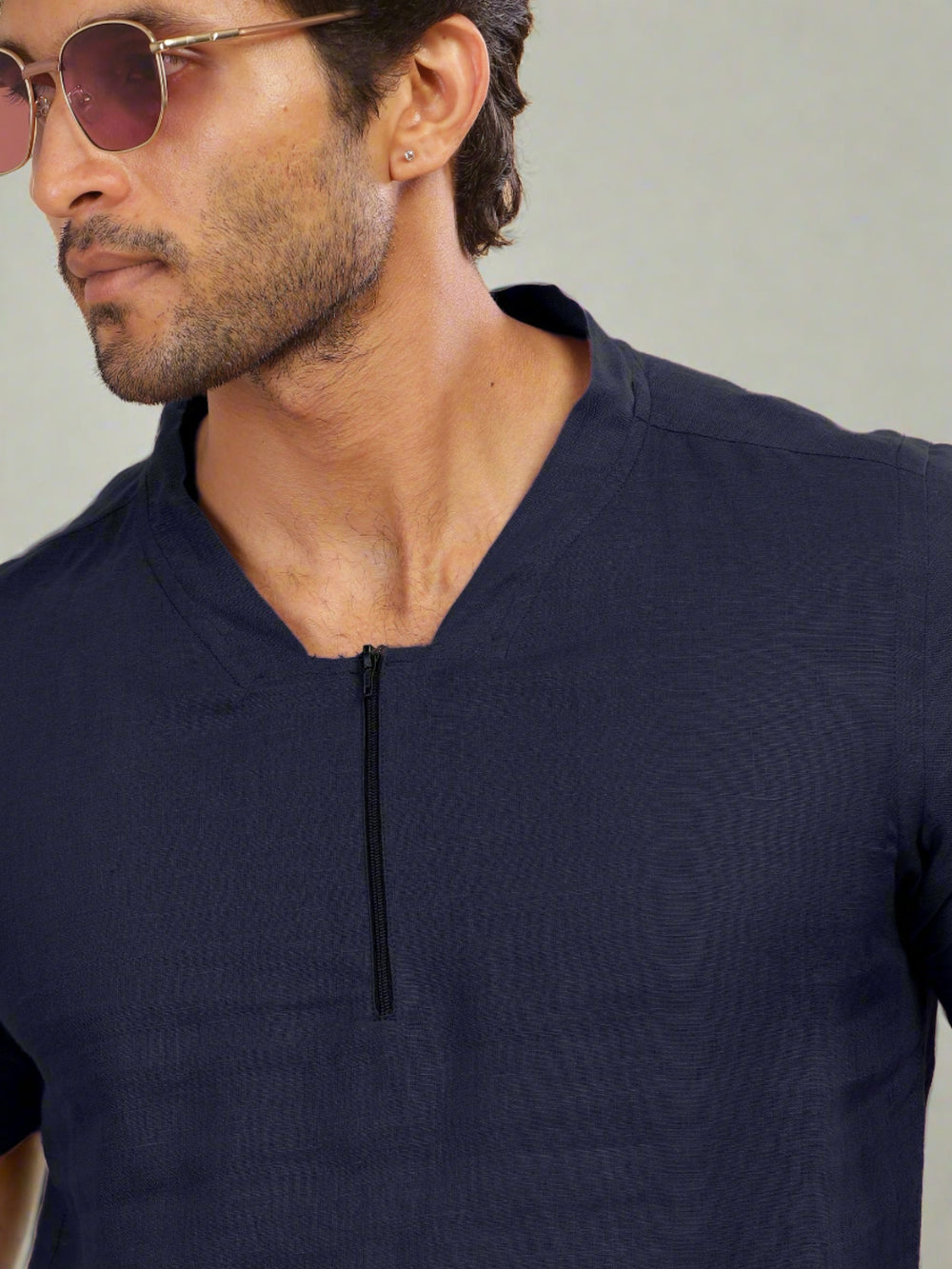 Meet the Sol tee: a basic t-shirt with a stylish twist. Featuring a front zipper, it looks cool whether zipped up or unzipped. This versatile piece combines simplicity with a modern edge, making it a standout addition to any wardrobe. Perfect for adding a touch of flair to your everyday look.