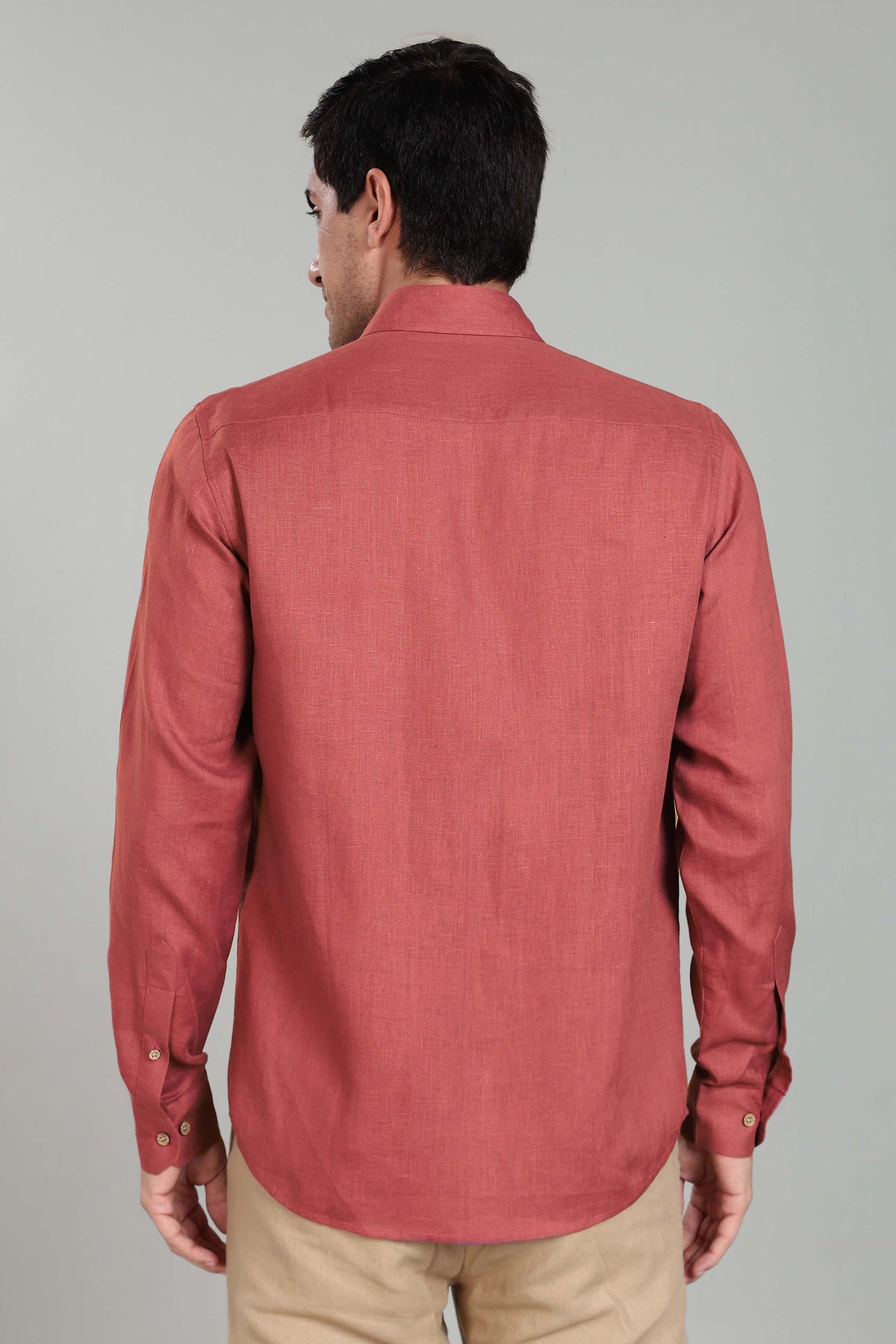 Ted - Pure Linen Full Sleeve Shirt - Terracotta Red