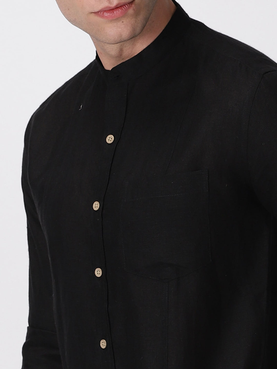 Trevor - Pure Linen Mandarin Collar Half Sleeve Shirt - Black