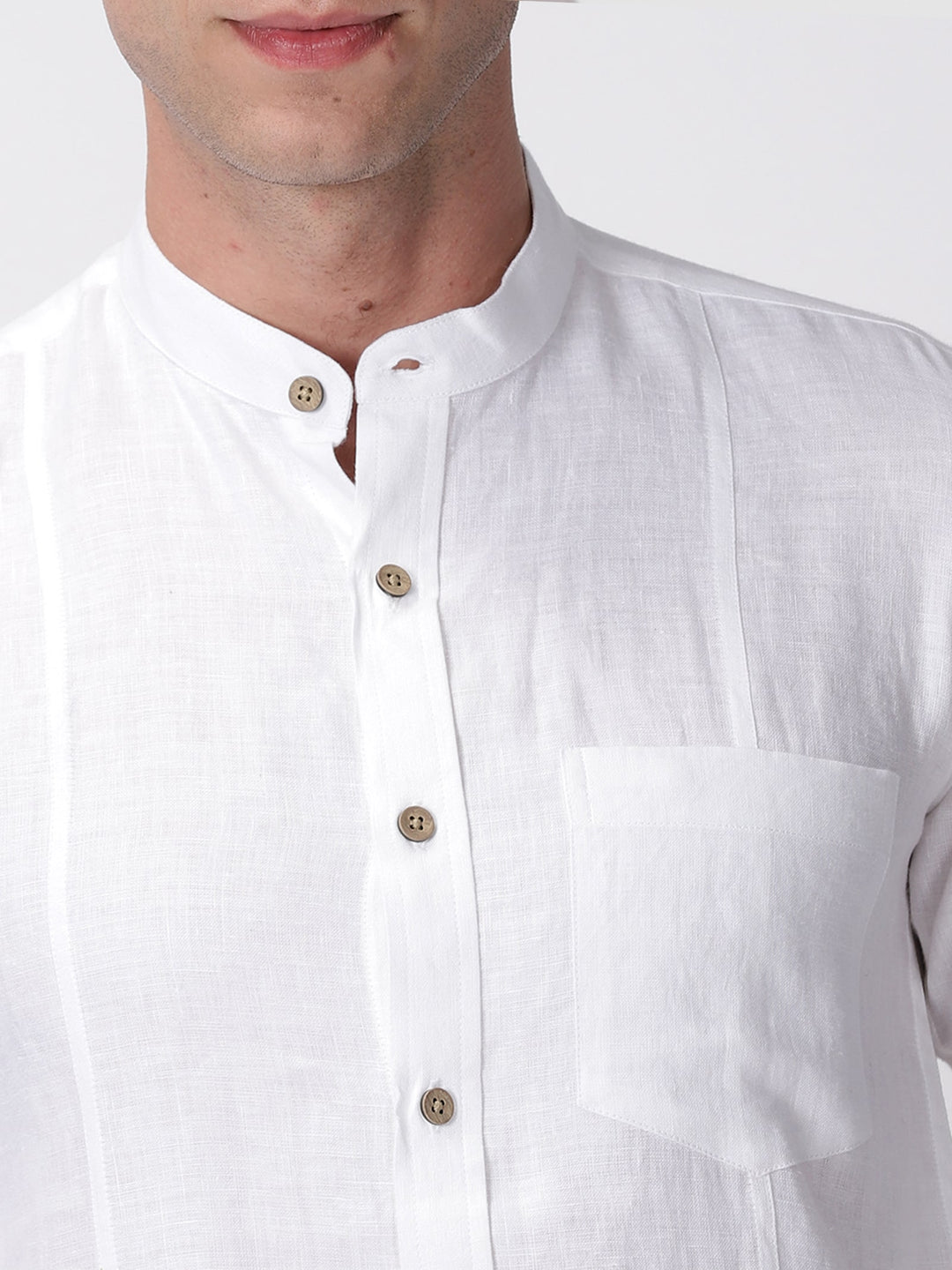 Trevor - Pure Linen Mandarin Collar Full Sleeve Shirt - White