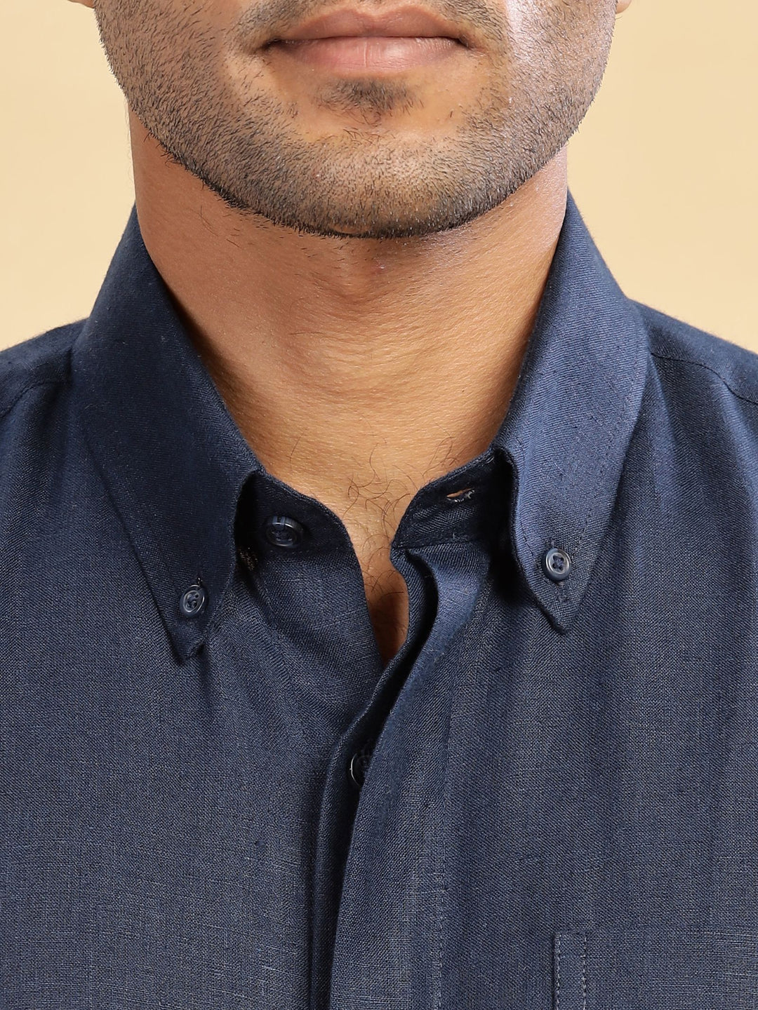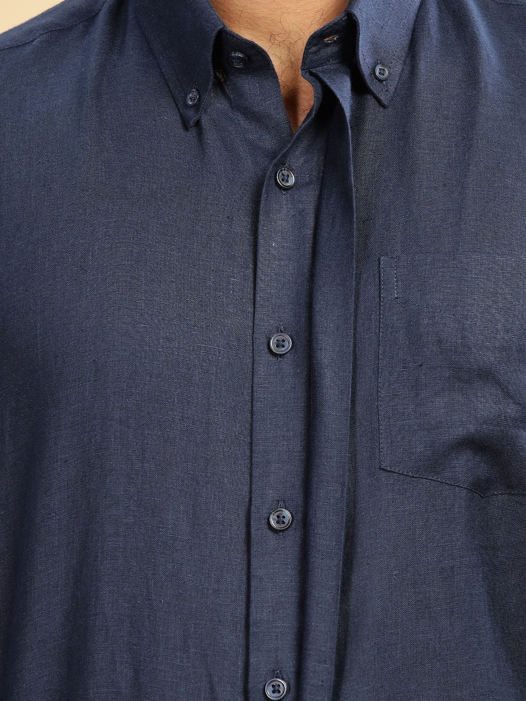Winston - Pure Linen Button Down Full Sleeve Shirt with Concealed Placket - Light Grey