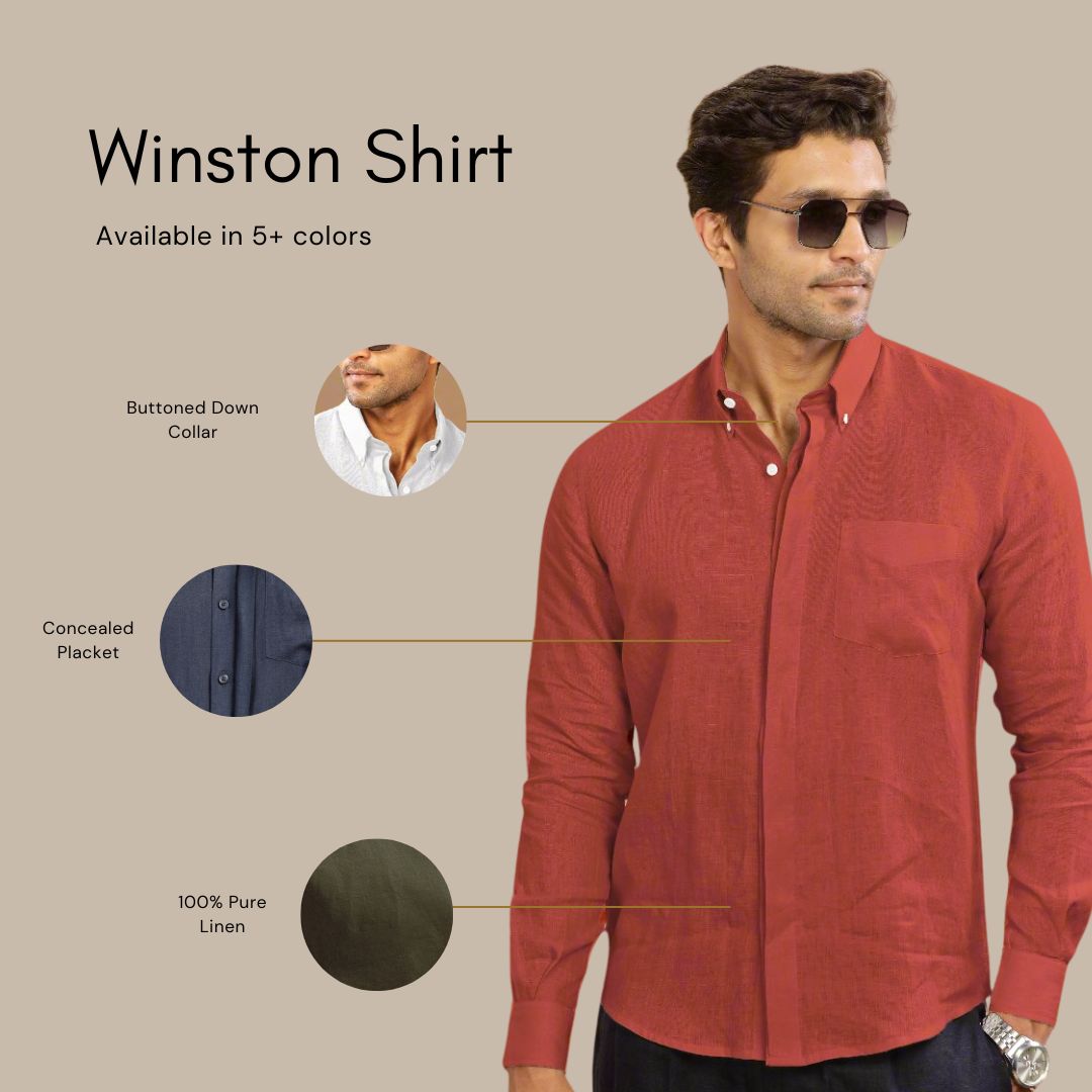 Step up your style with the Winston Shirt, a timeless classic that features a button-down collar and a concealed placket. Crafted from pure linen, this shirt not only provides a sleek and minimalist look but also ensures all-day comfort, keeping you cool and confident. With its refined design, the Winston Shirt is perfect for both casual outings and more formal occasions, making it a versatile addition to your wardrobe.