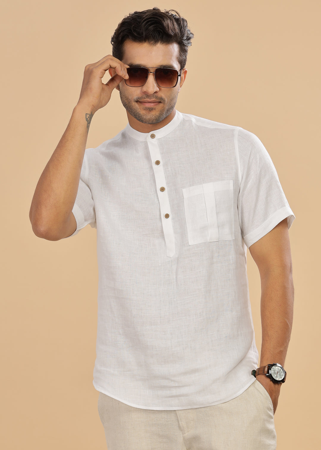 Work From Home: Stay cool in a linen short kurta that’s just the right mix of casual and presentable.