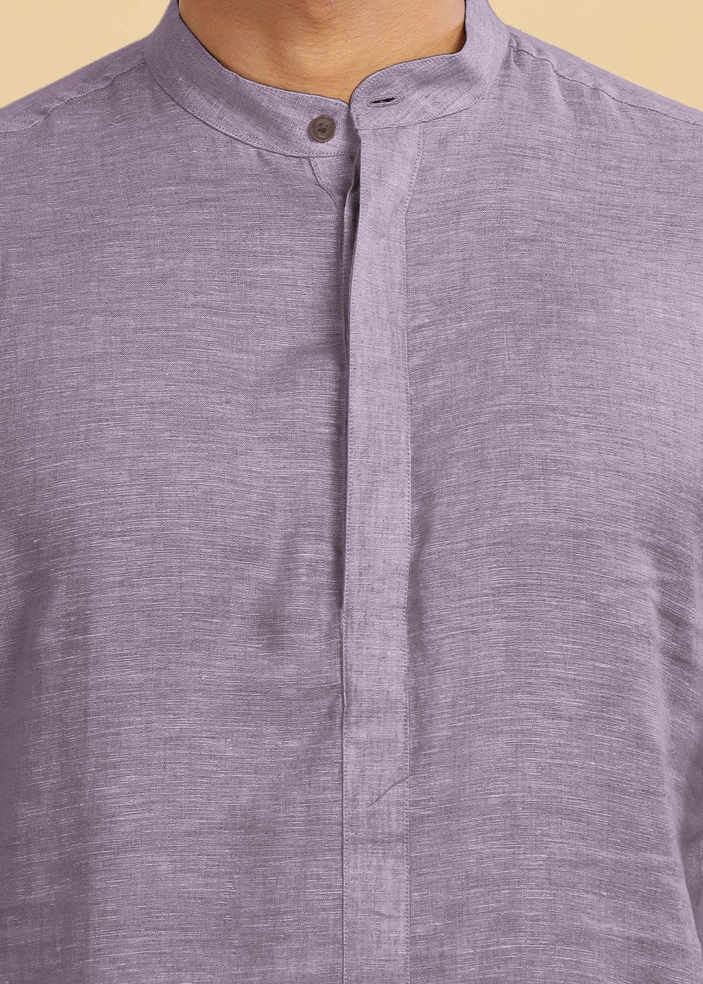 Arnav Kurta with a broad-notched collar in White, Oakwood Brown, and Lavender Violet