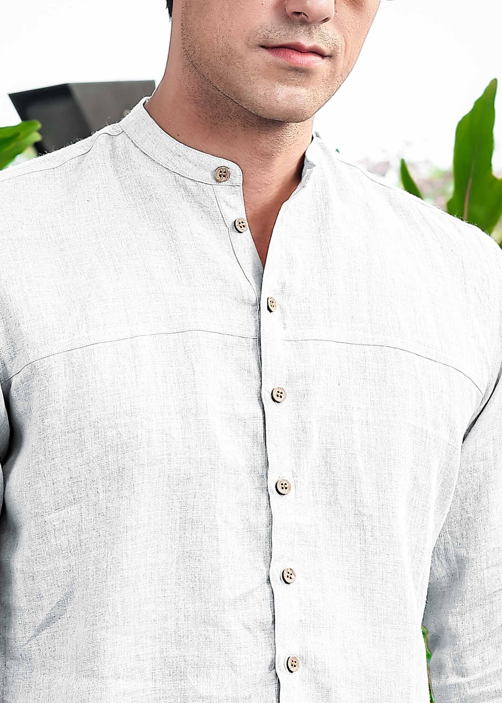 Our linen kurta for men is made exclusively from certified European flax, a fiber known for its durability, lightweight nature, and ability to regulate temperature. Unlike synthetics or even cotton, linen breathes better and softens with every wear, making your garment feel better the longer you own it.