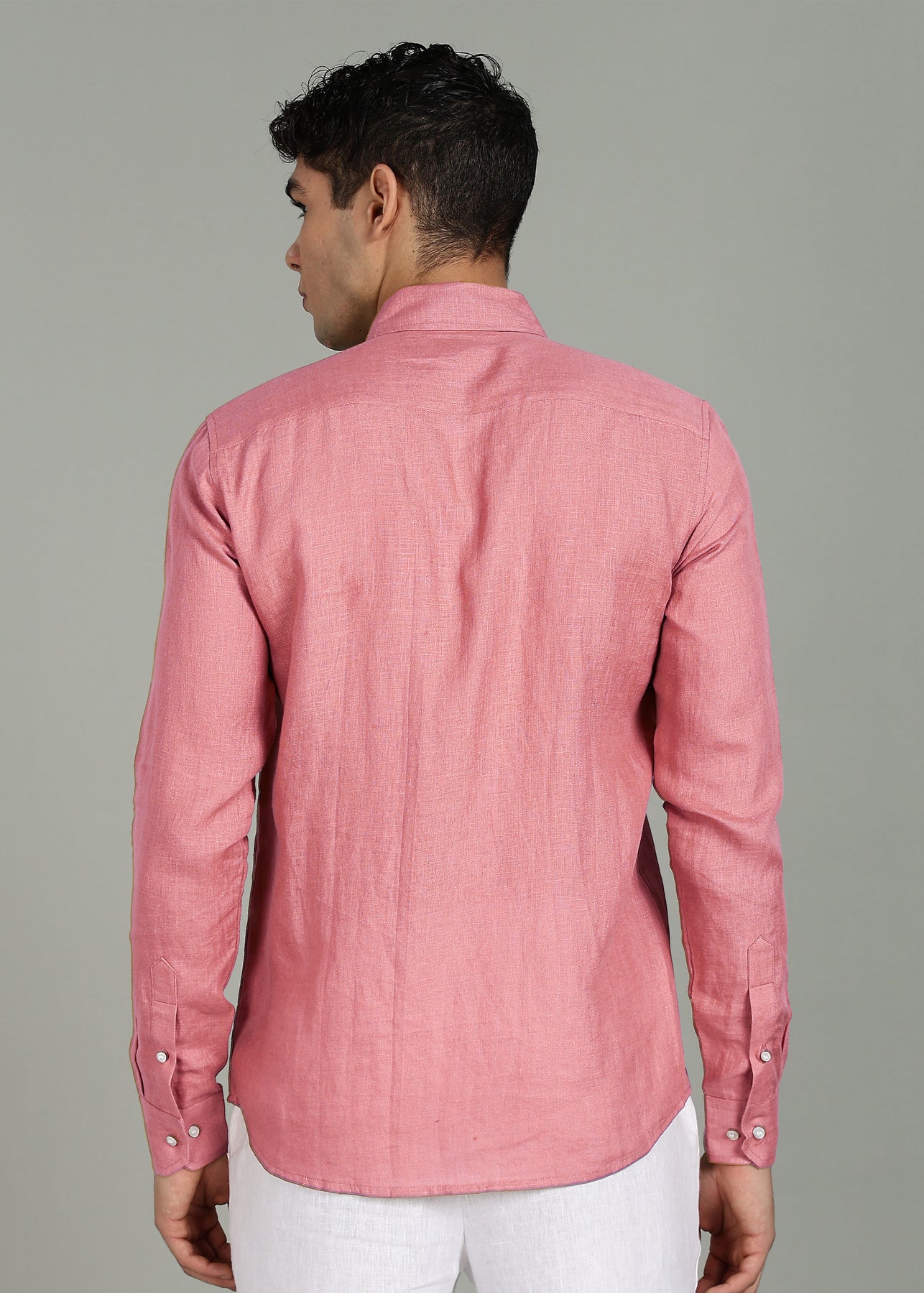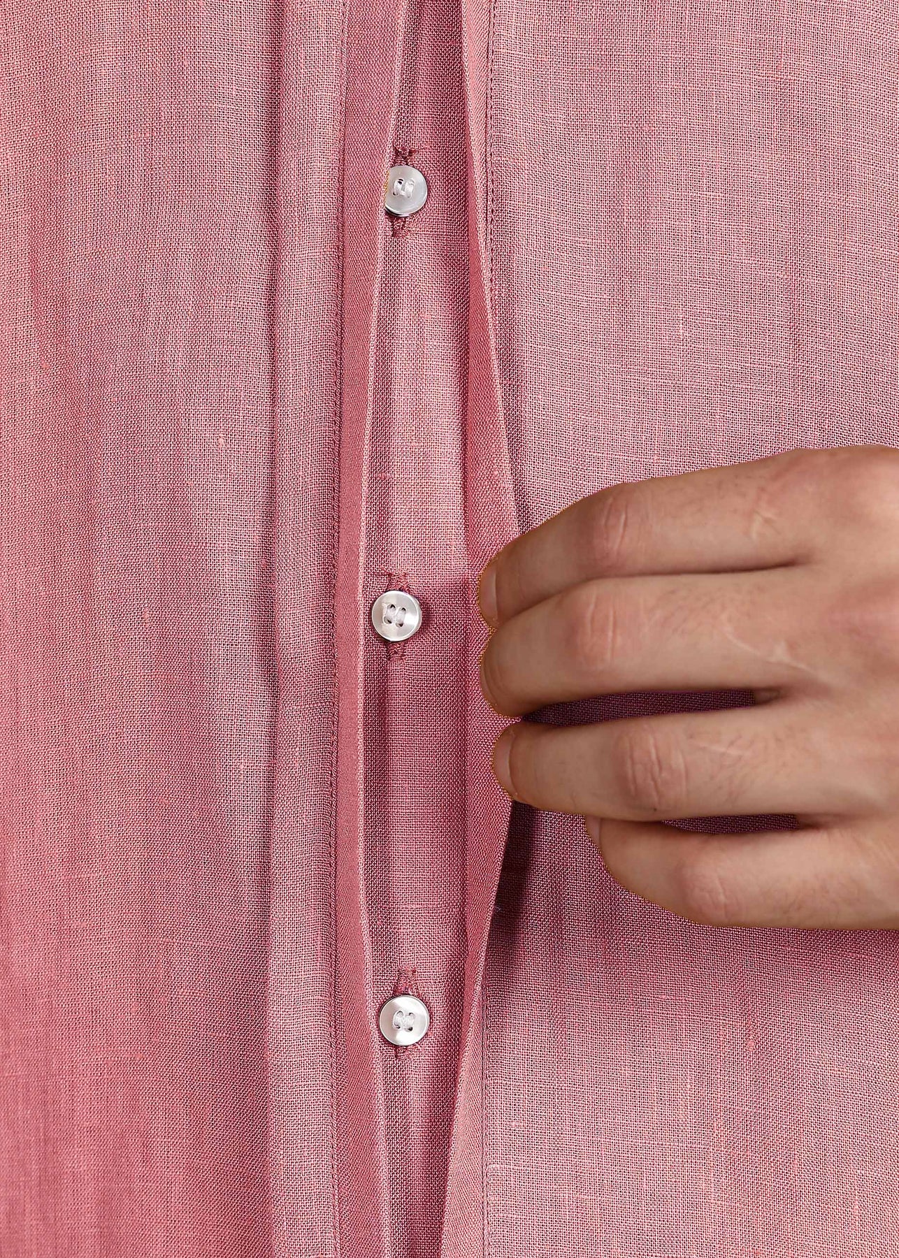 Atlas - Pure Linen Full-Sleeve Shirt with Concealed Buttons - Dusty Pink