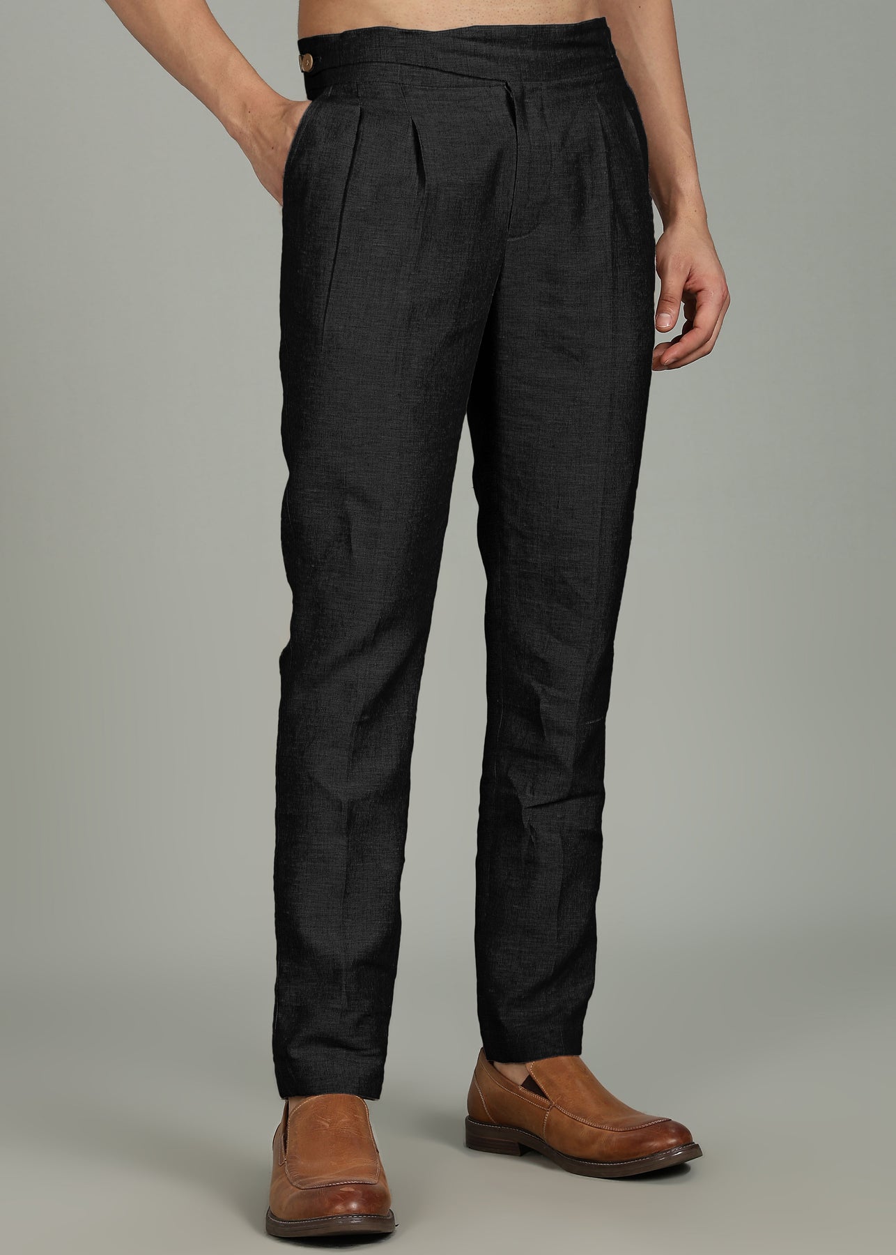 Juan - Pure Linen Italian Inspired Formal Trousers – Black