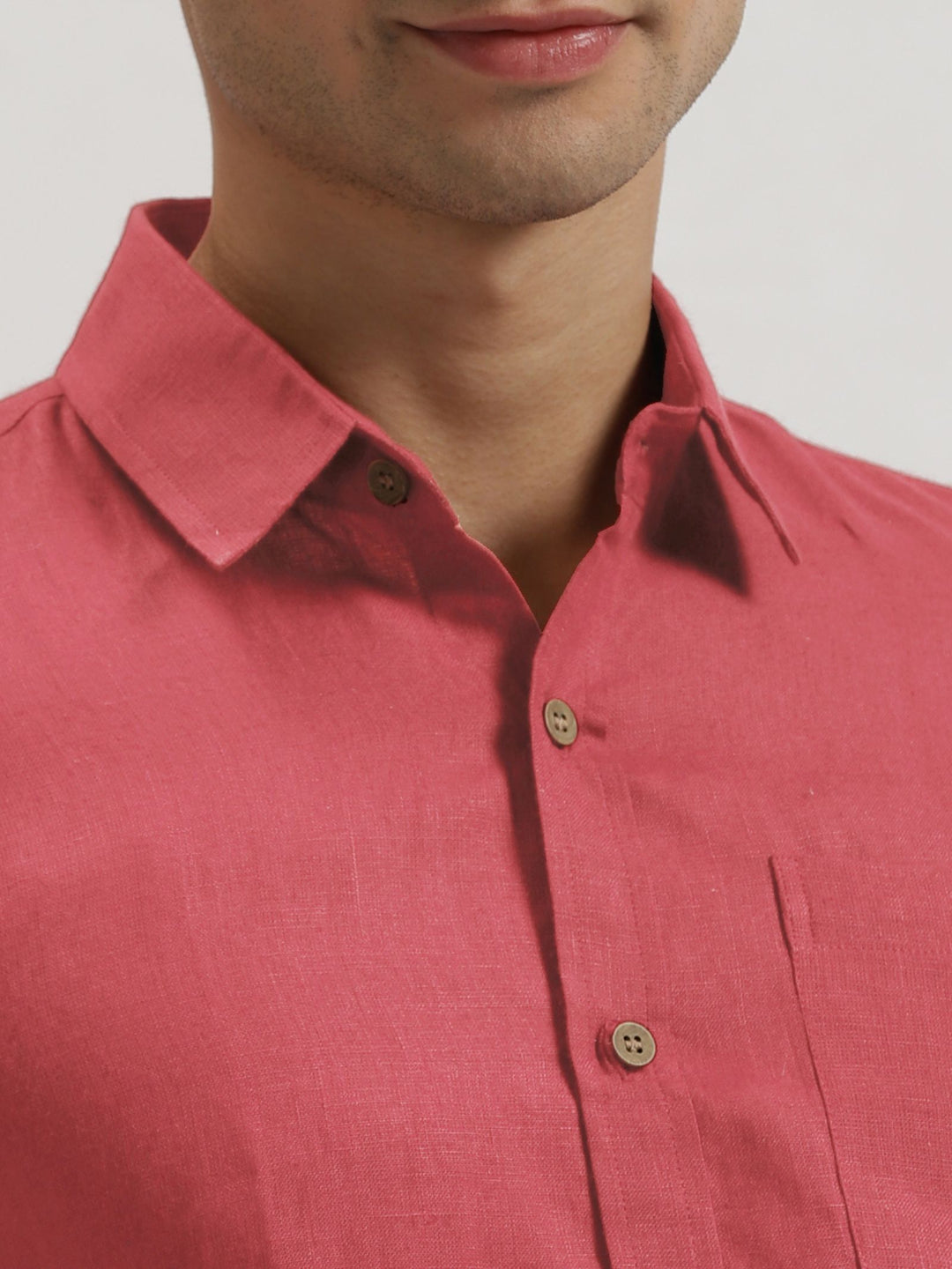 Harvey - Pure Linen Half Sleeve Shirt - Light Pink