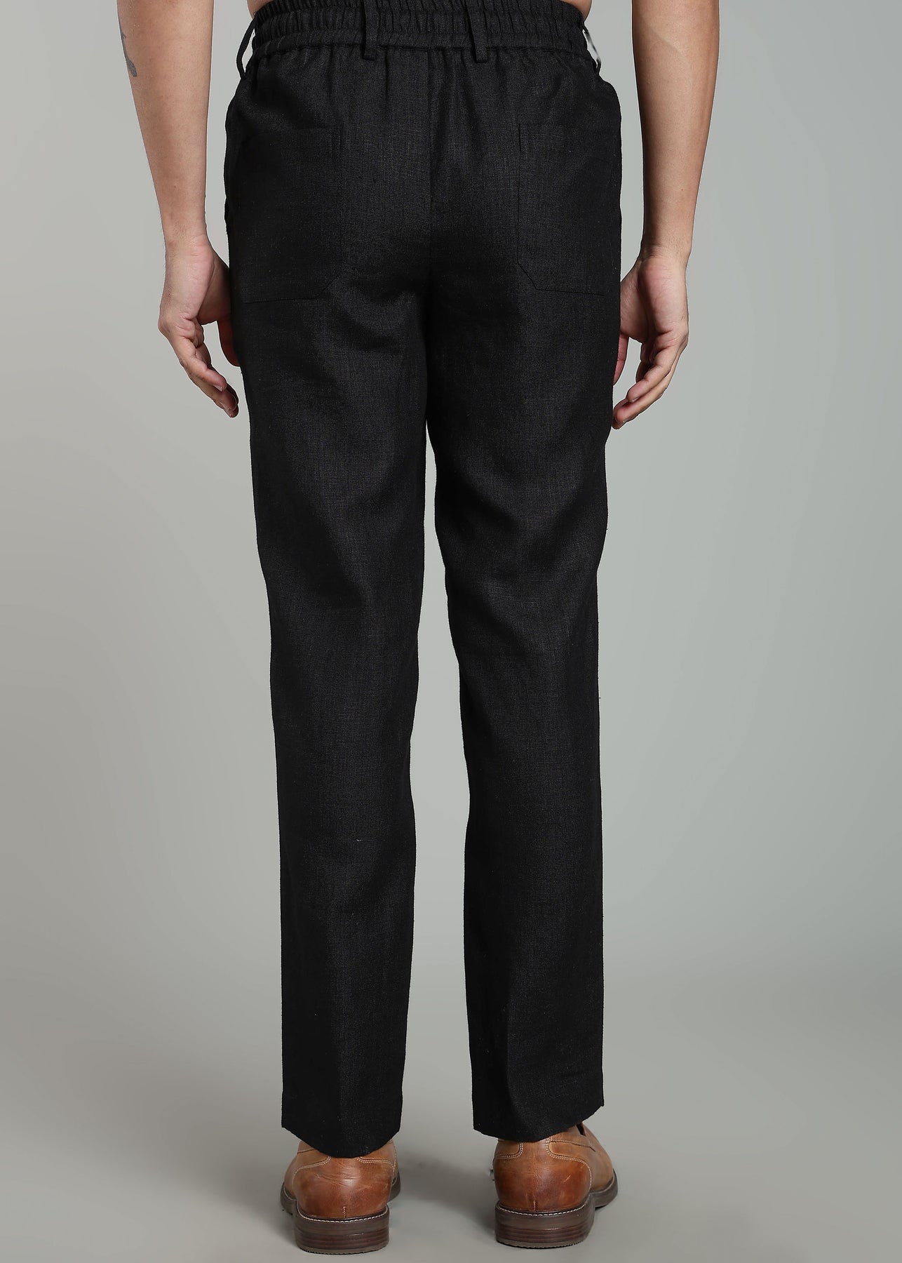 Drake - Pure Linen Trousers With Elastic Waist Band, Drawcord & Zipper - Black
