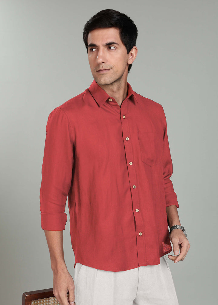Harvey - Pure Linen Full Sleeve Shirt - Terracotta Red