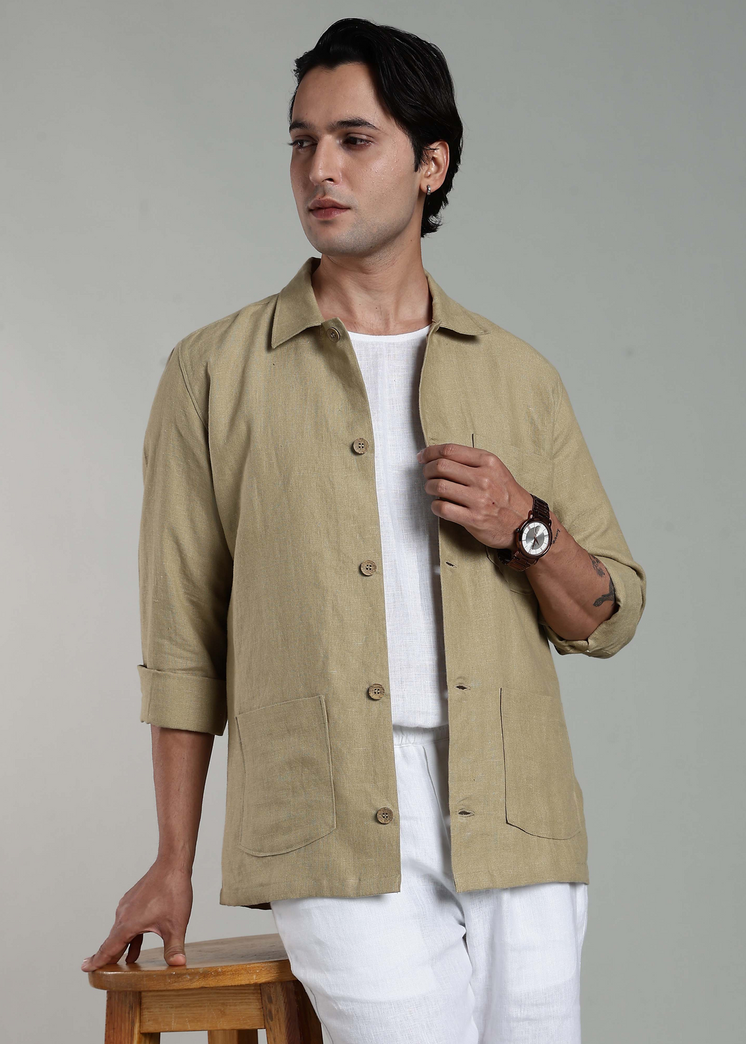 Filipe - Pure Linen Utility Jacket - Pastel Blue