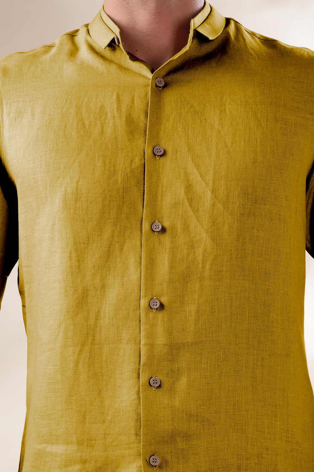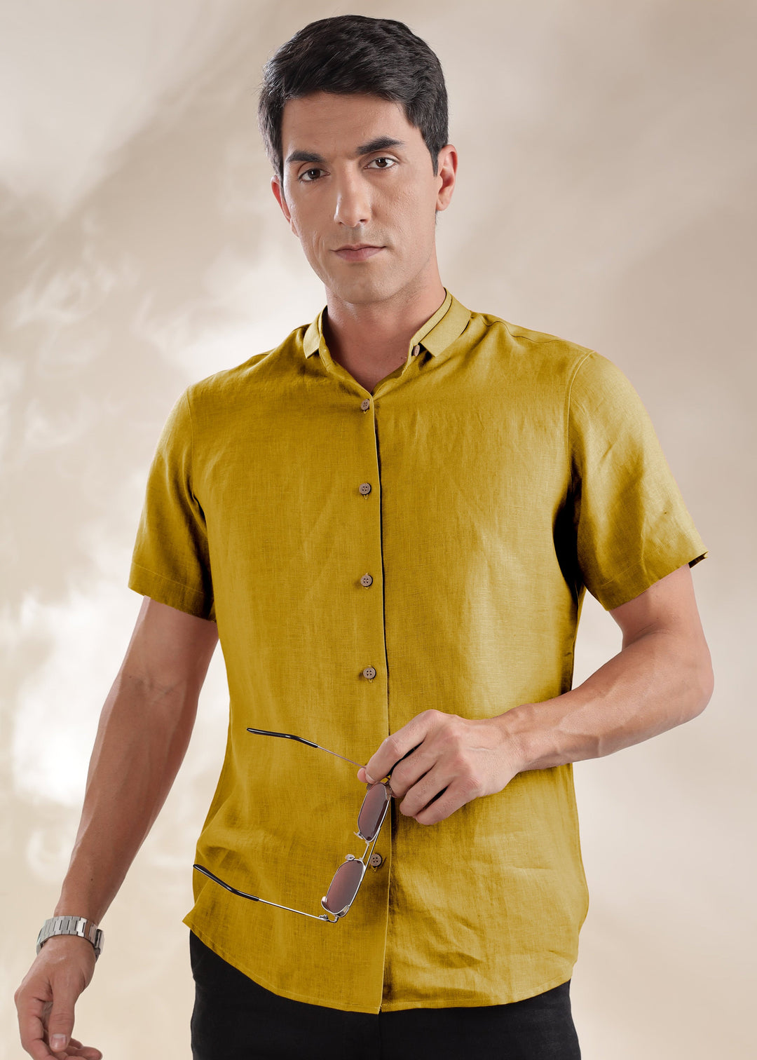 1. Harvey – Mustard Yellow Regular Collar Linen Shirt