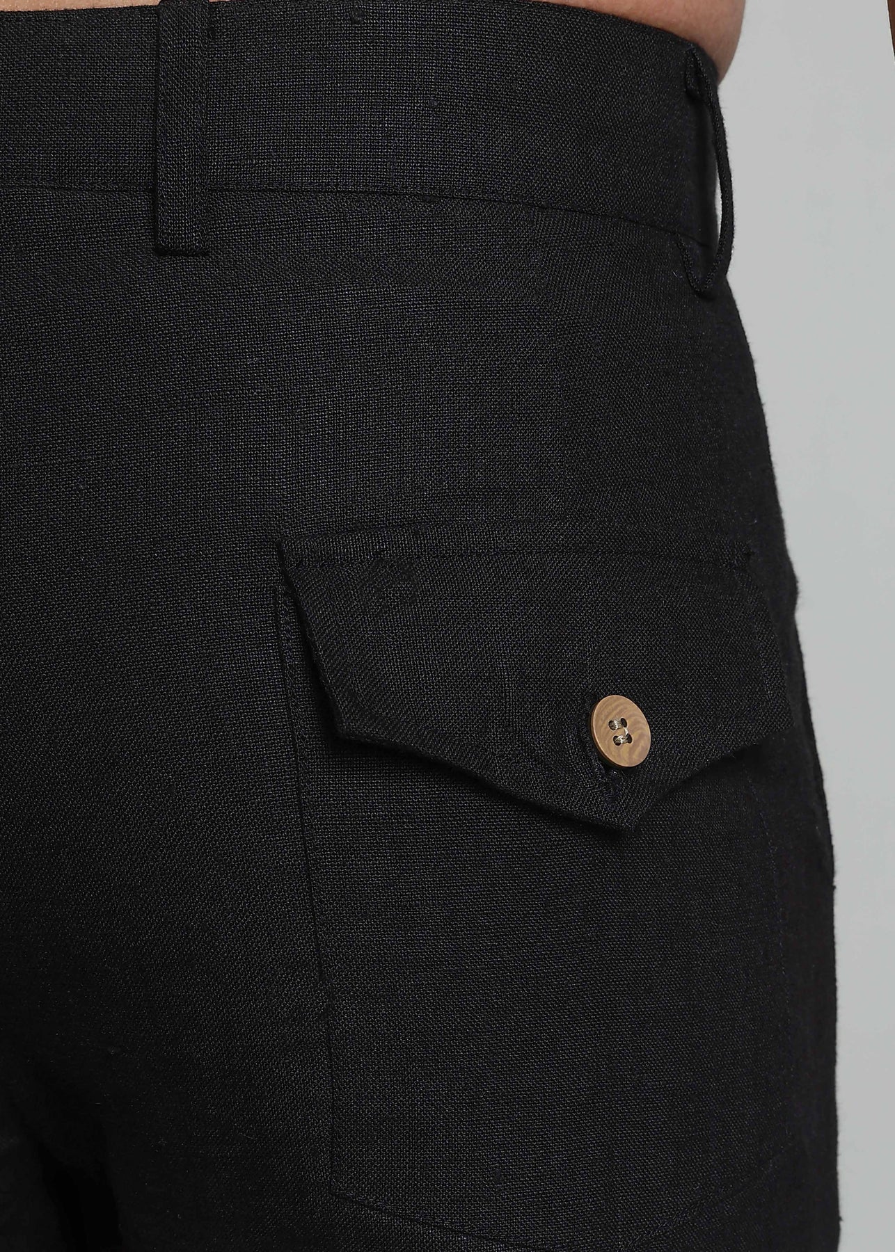 Vanta - Pure Linen Relaxed Trousers with Foldable Hem – Black