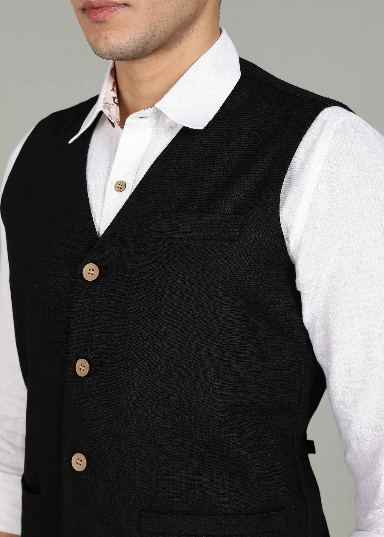 The Clyde Pure Linen Waistcoat expertly blends tailored refinement with breathable comfort. Featuring a five-button front, a structured V-neck silhouette, and subtle welt pockets, this lightweight waistcoat is crafted from pure linen for ideal warm-weather wear. A back belt allows for adjustable fit, ensuring both style and comfort. Perfectly suited to layer over shirts or kurtas, it adds understated elegance to both casual and formal occasions.