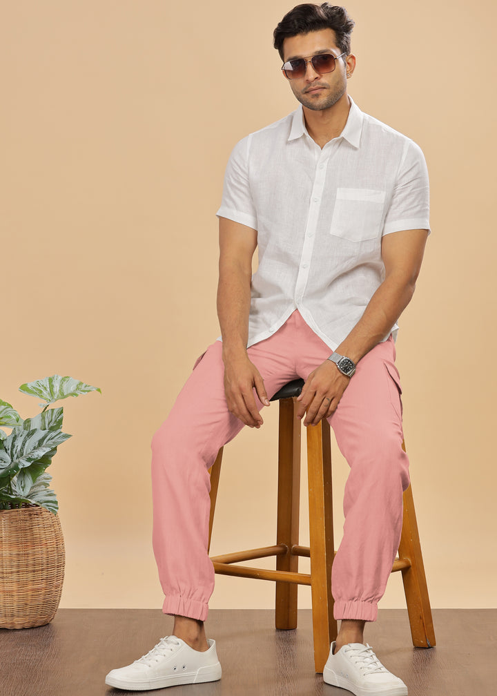 Rose Pink joggers for men that are extremely comfortable. Elastic waist band along with 6 pockets make it your favorite pair.