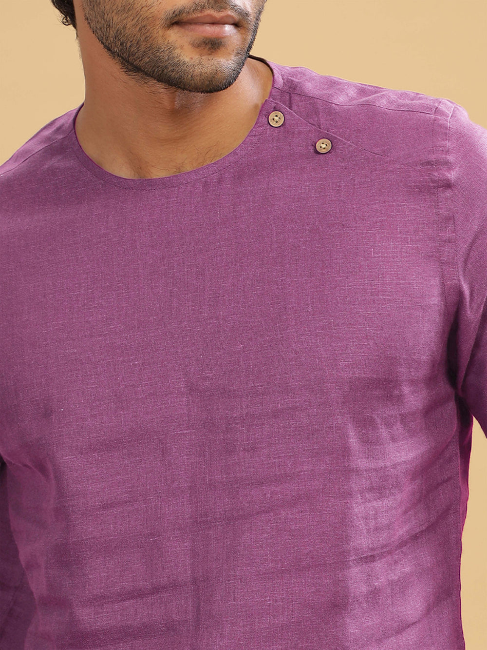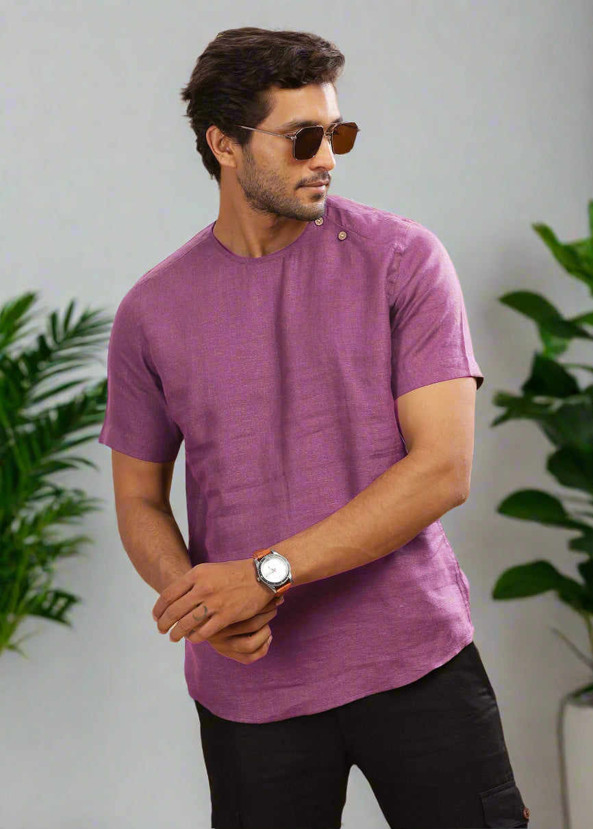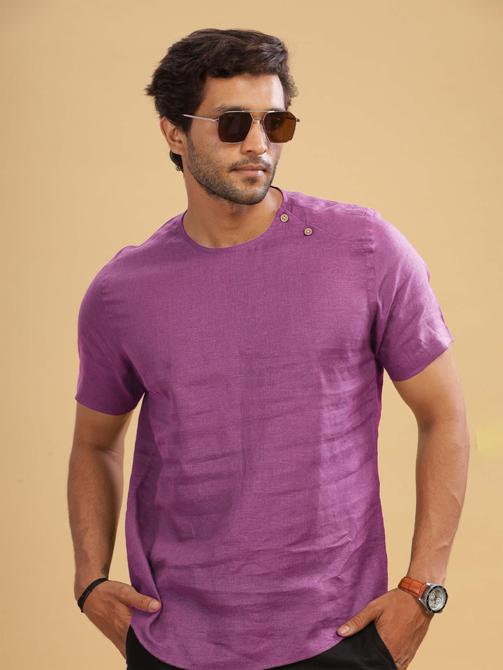 Kobe - Pure Linen Short Sleeve T-Shirt - Berry Purple(Factory Rescue)