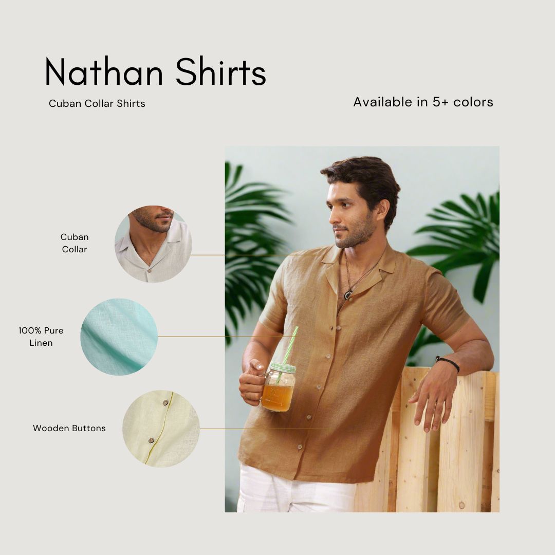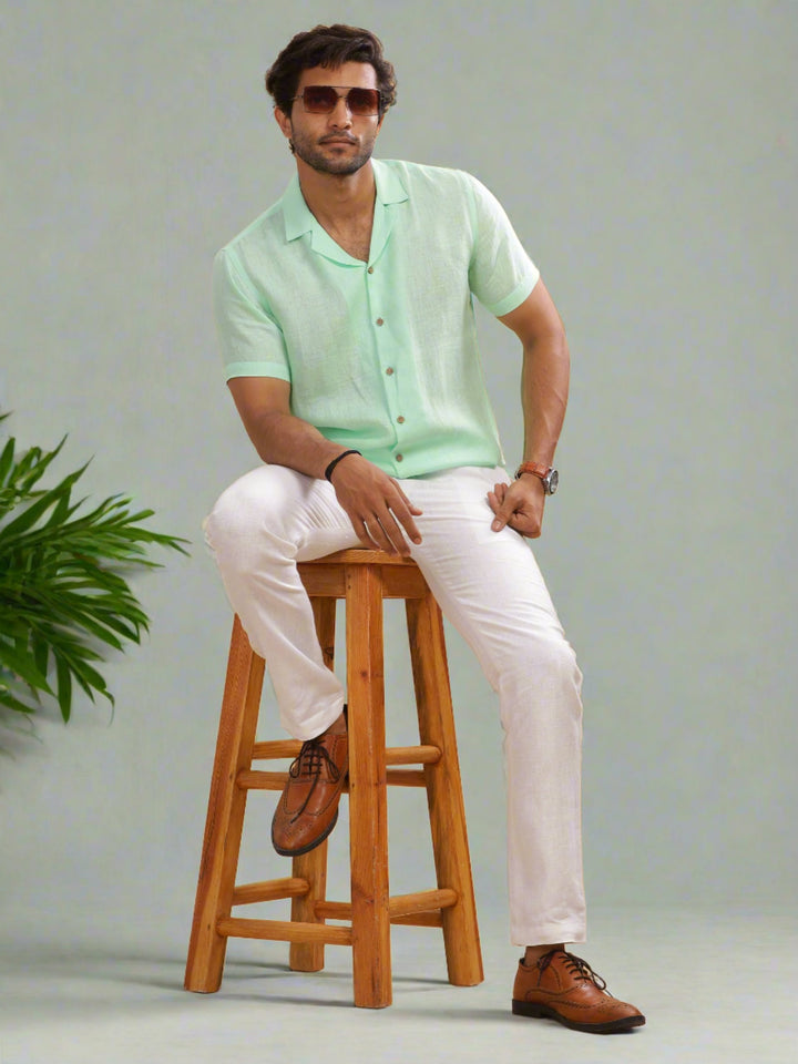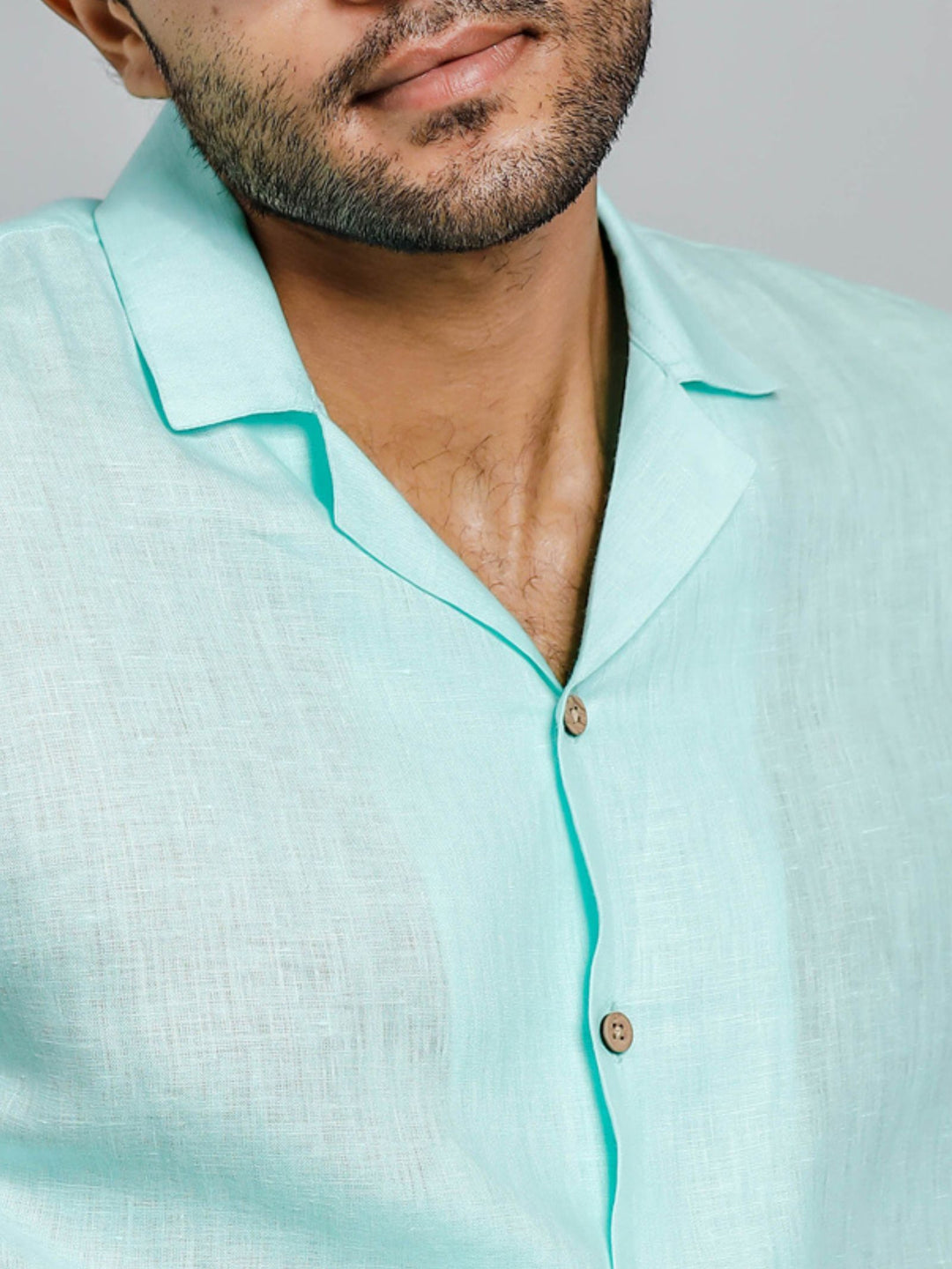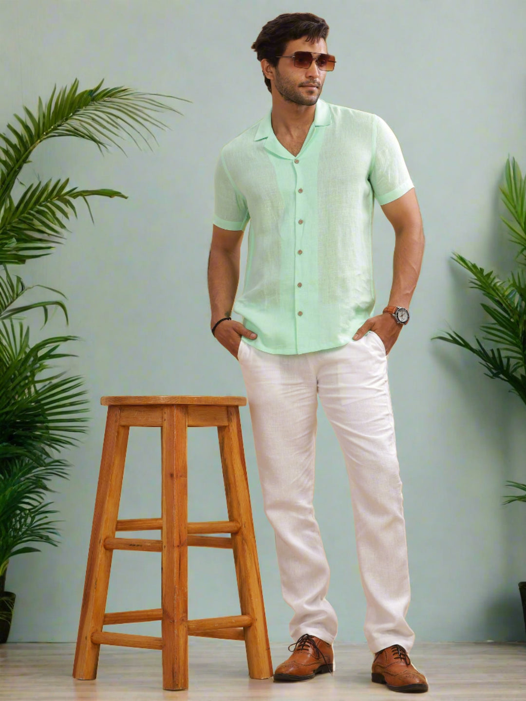 Nathan - Cuban Collar Pure Linen Half Sleeve Shirt - Mint Green (Factory Rescue)