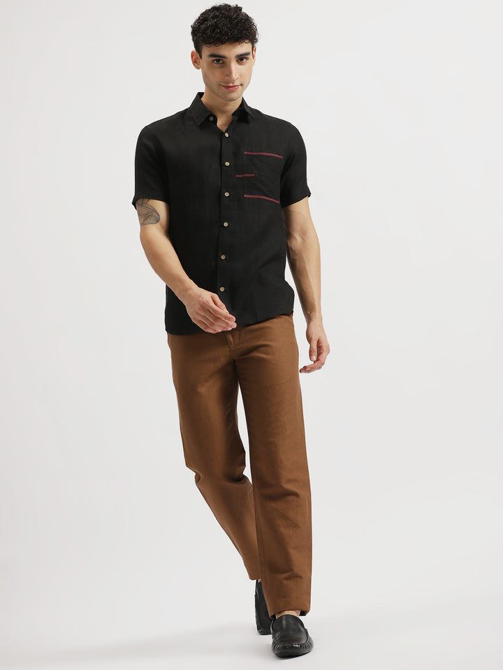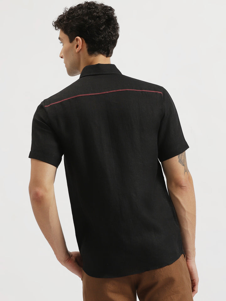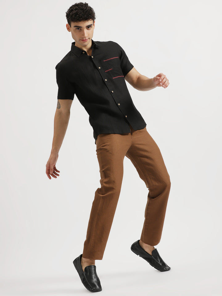 Robert - Pure Linen Pocket Detailed Half Sleeve Shirt - Black (Factory Rescue)