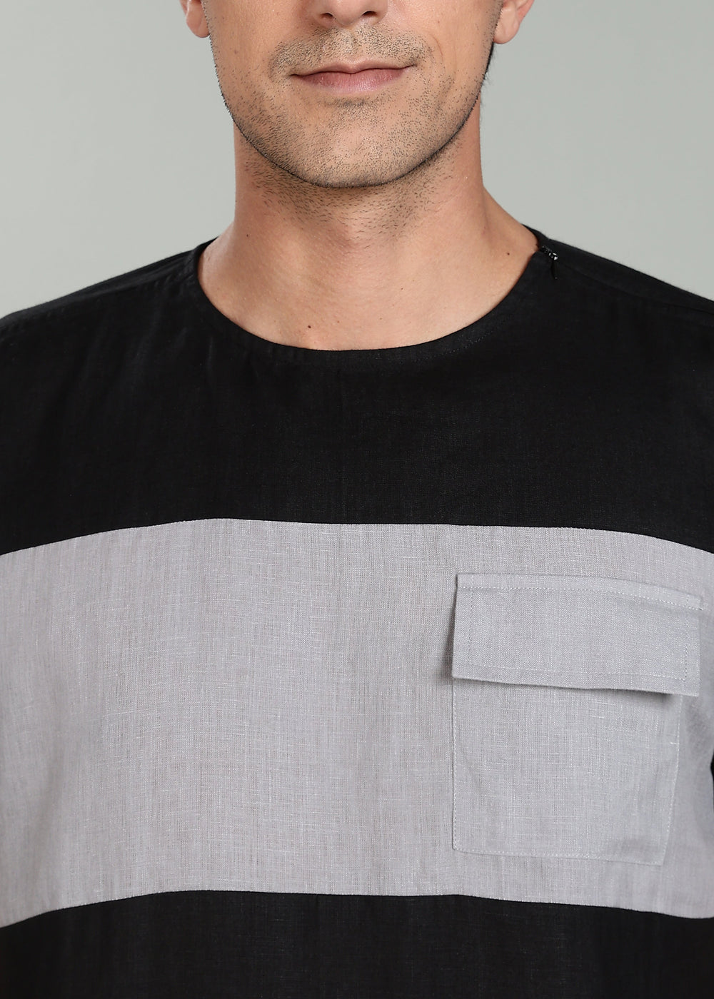 The round neck silhouette gets a contemporary twist with a shoulder zipper, adding ease to wear and a touch of uniqueness.