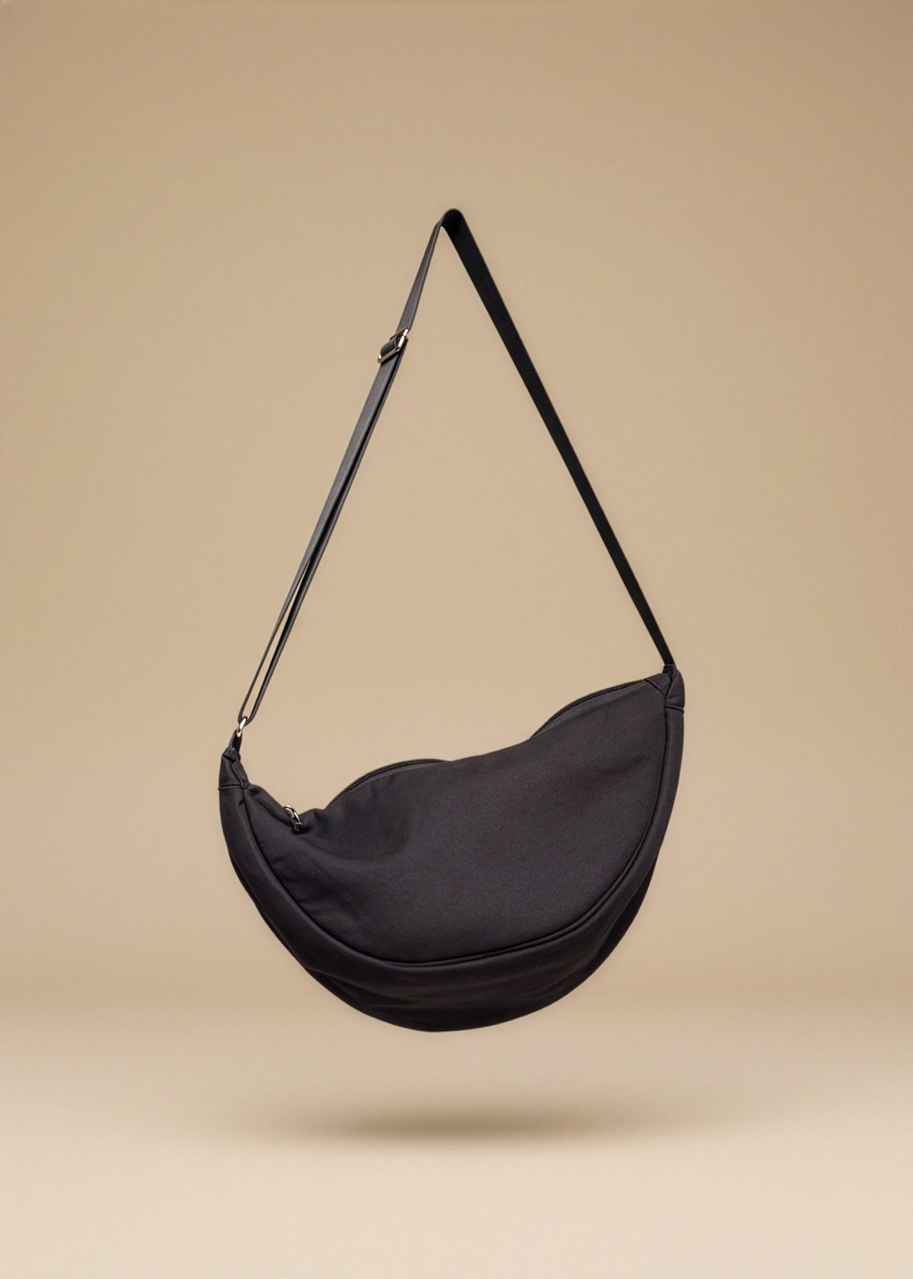 Crafted from up-cycled linen, this up-cycled Moon Bag combines design with practical functionality. Its spacious interior accommodates travel essentials while the structured silhouette maintains its shape throughout your journey. The secure closure system ensures your belongings remain protected, making it an ideal companion for weekend getaways or daily adventures. The versatile black finish pairs effortlessly with any wardrobe, while the durable linen construction promises longevity with minimal environmental impact.